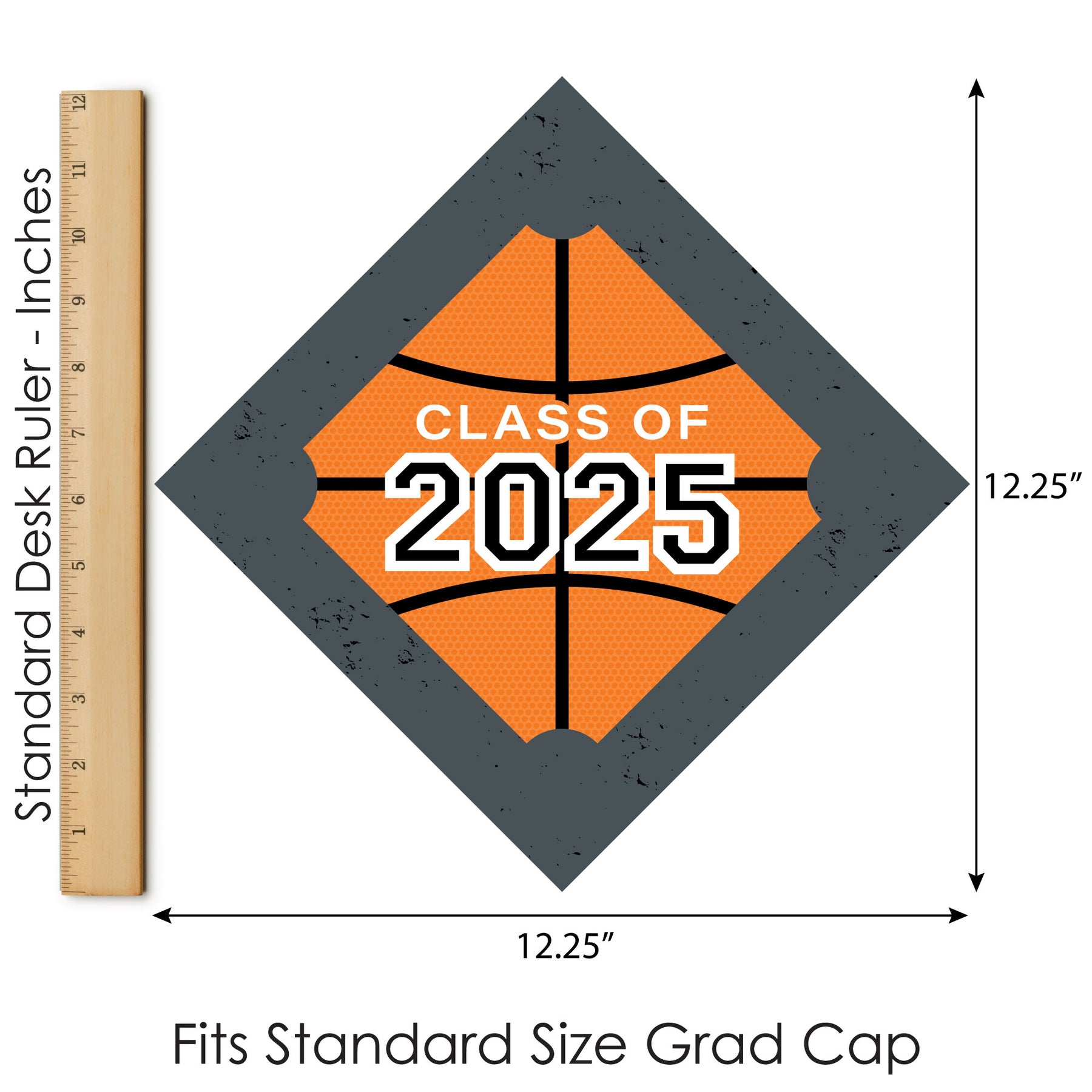 Decorate your mortarboard graduation cap to stand out from the crowd of classmates on graduation day. Grad Basketball - 2026 Grad Cap Cover includes top piece, base piece, and poster mounts to DIY assembly a Class of 2026 graduation cap topper. Use the printed guides on each the top piece and base piece to align placement of Grad Basketball - 2026 Grad Cap Cover. The base piece will cover majority of mortarboard and top piece will give the design a three-dimensional element that covers the tassel button. Poster mounts are provided to easily attach Grad Cap Cover to the top of mortarboard and help easily move tassel from left to right. After the commencement ceremony, use Grad Basketball - 2026 Grad Cap Cover for a fun graduation keepsake.
