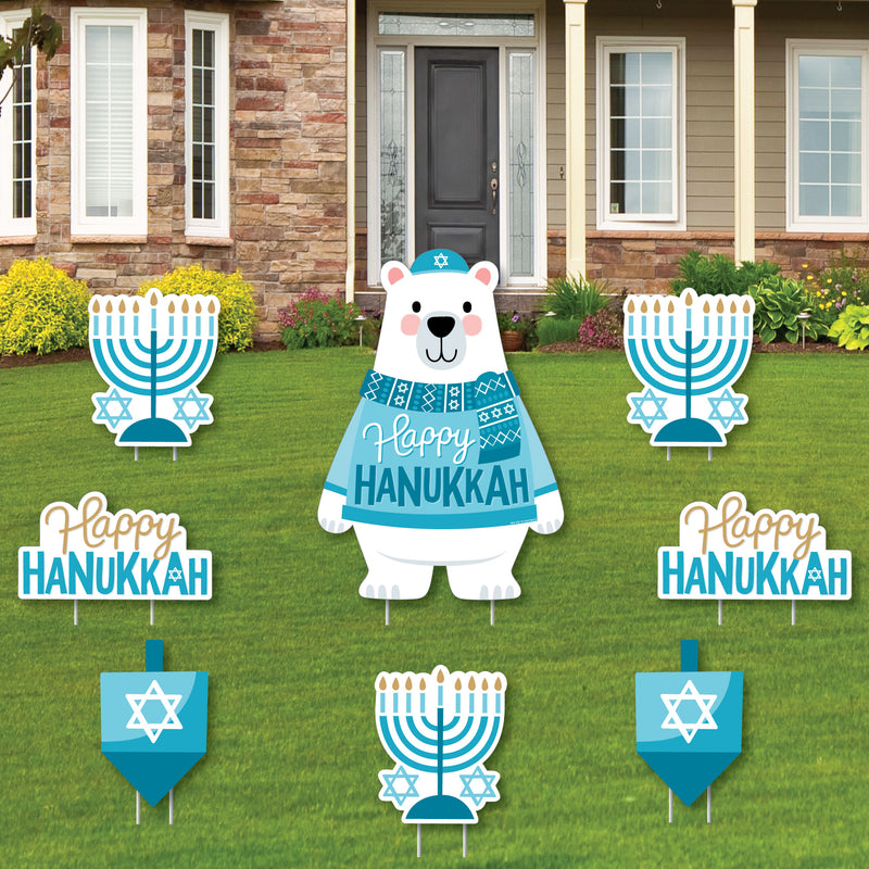 Hanukkah Bear - Chanukah Holiday Sweater Party Yard Signs - Set of 8