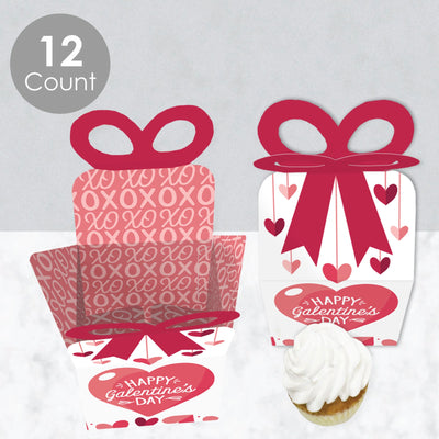 Happy Galentine's Day - Square Favor Gift Boxes - Valentine's Day Party Bow Boxes - Set of 12