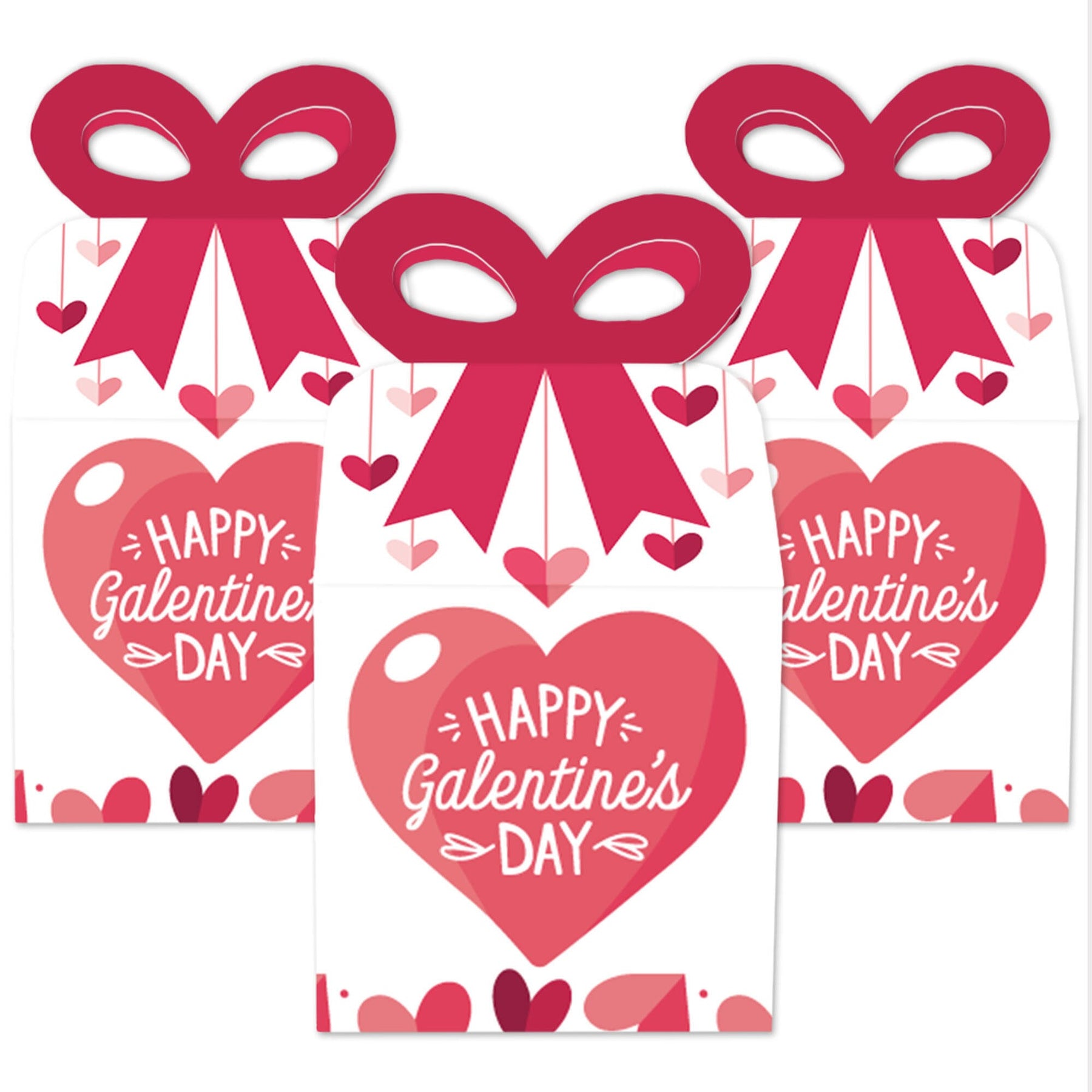 Bow boxes will complete your Valentine's Day party. Bow boxes are ideal for holding small thank you gifts or homemade treats that are under 3.5 inches tall (height for storing items in closed box). Happy Galentine's Day bow boxes will arrive flat and each box will have crease lines and numbered tabs for easy folding. When assembled and closed, each box creates a 3D paper bow-shaped top with a square bottom. Packaging will include assembly instructions. Display as goodie boxes at your dessert buffet table or hand out to guests after the celebration.