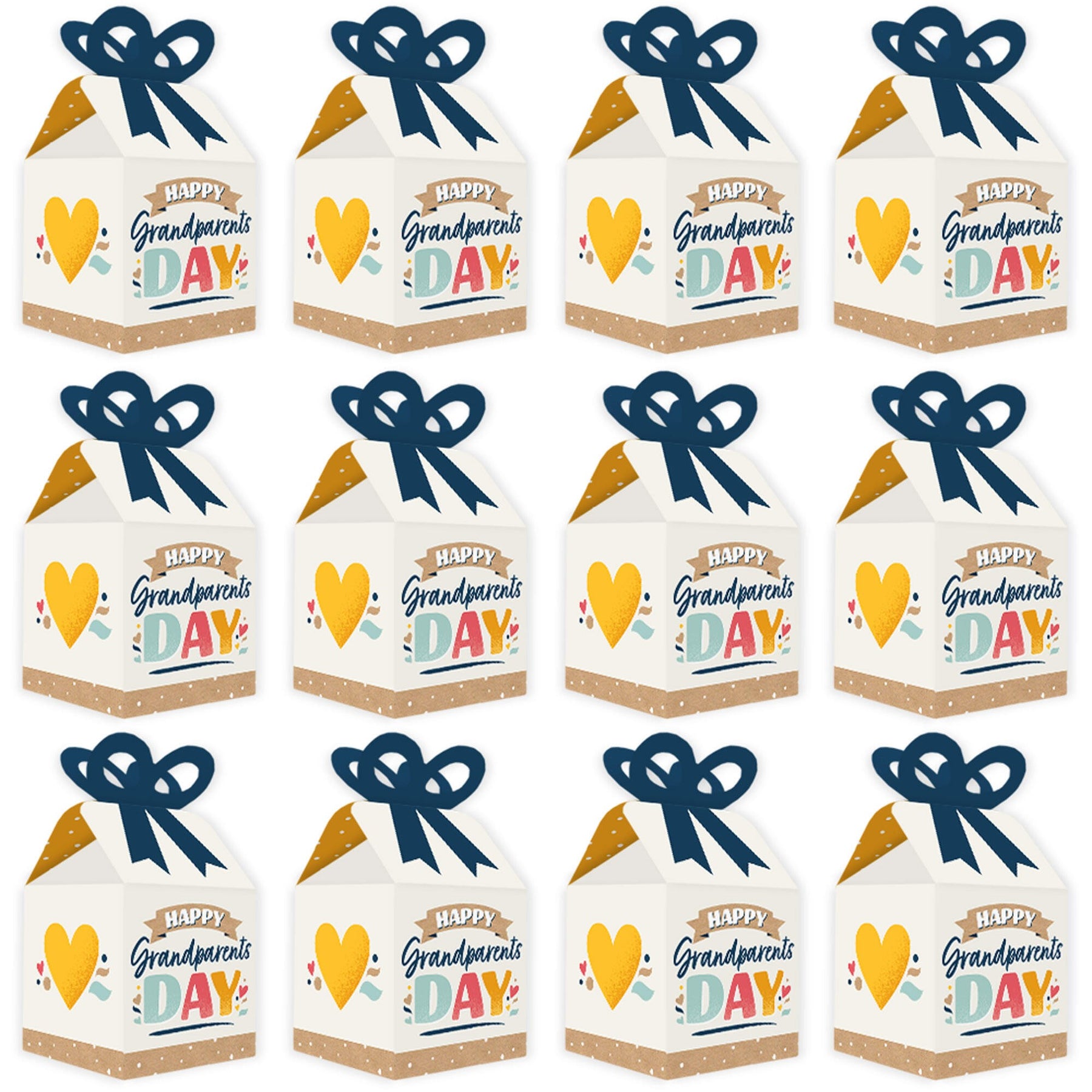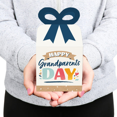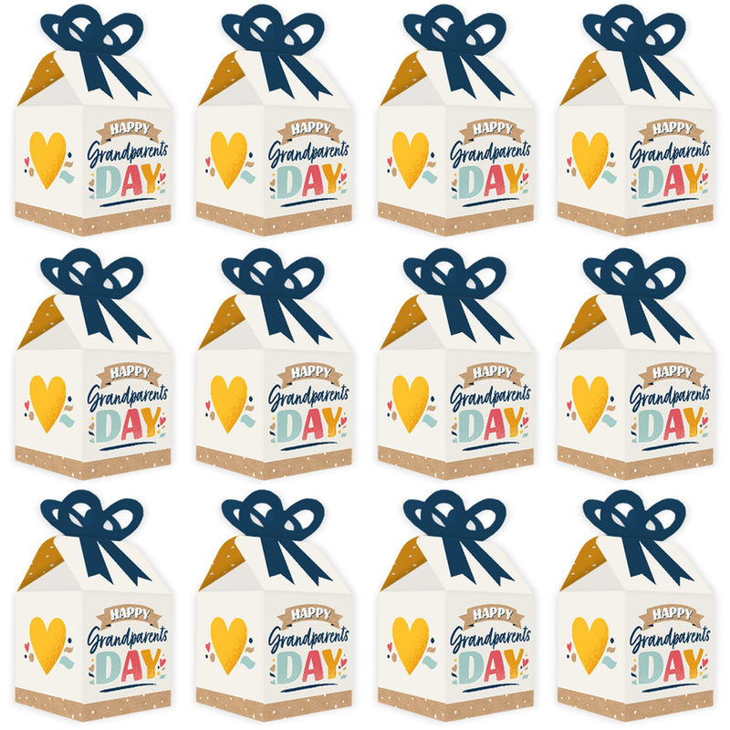 Happy Grandparents Day - Square Favor Gift Boxes - Grandma & Grandpa Party Bow Boxes - Set of 12