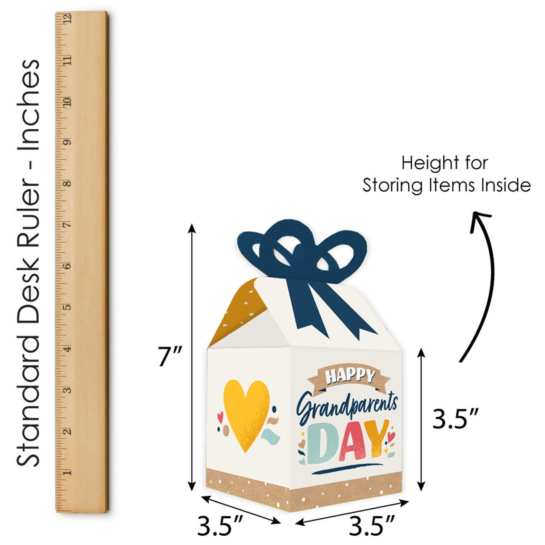 Bow boxes will complete your Grandma & Grandpa Party. Bow boxes are ideal for holding small thank you gifts or homemade treats that are under 3.5 inches tall (height for storing items in closed box). Happy Grandparents Day bow boxes will arrive flat and each box will have crease lines and numbered tabs for easy folding. When assembled and closed, each box creates a 3D paper bow-shaped top with a square bottom. Packaging will include assembly instructions. Display as goodie boxes at your dessert buffet table or hand out to guests after the celebration.