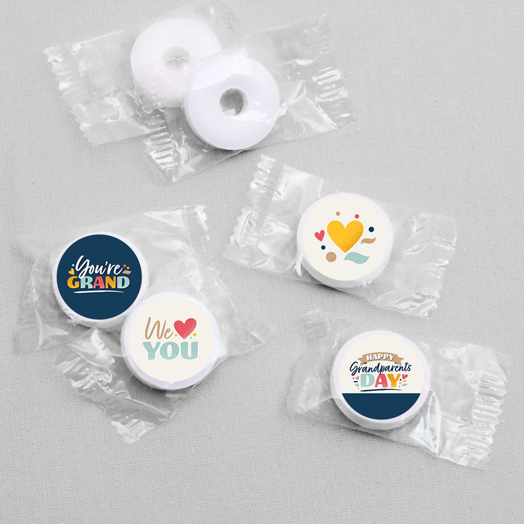 Make your treats a little more special when you adorn them with the Happy Grandparents Day round candy stickers. These delightful stickers come out to be about .75 inches and really help to elevate the attention to detail for your Grandma & Grandpa Party. With 4 coordinating designs and 108 stickers total, using these Happy Grandparents Day labels is effortless. Simply peel and stick them onto your favorite round bite-sized candies like wrapped chocolates and mints. Use the stickered candies as decoration on your fabulous table setup or give them out to guests as party favors. Consider using the Happy Grandparents Day round stickers on bottled beverages or party stationery. The creativity is endless! Without a doubt, the Happy Grandparents Day round candy stickers are the icing on the cake that will make your party an unforgettable event.