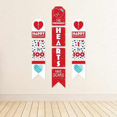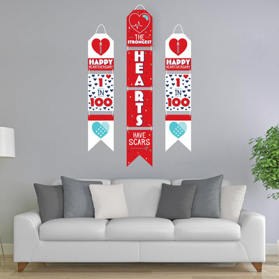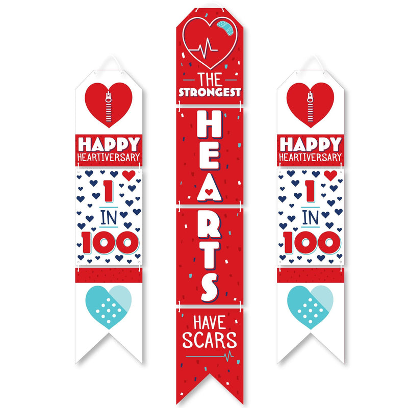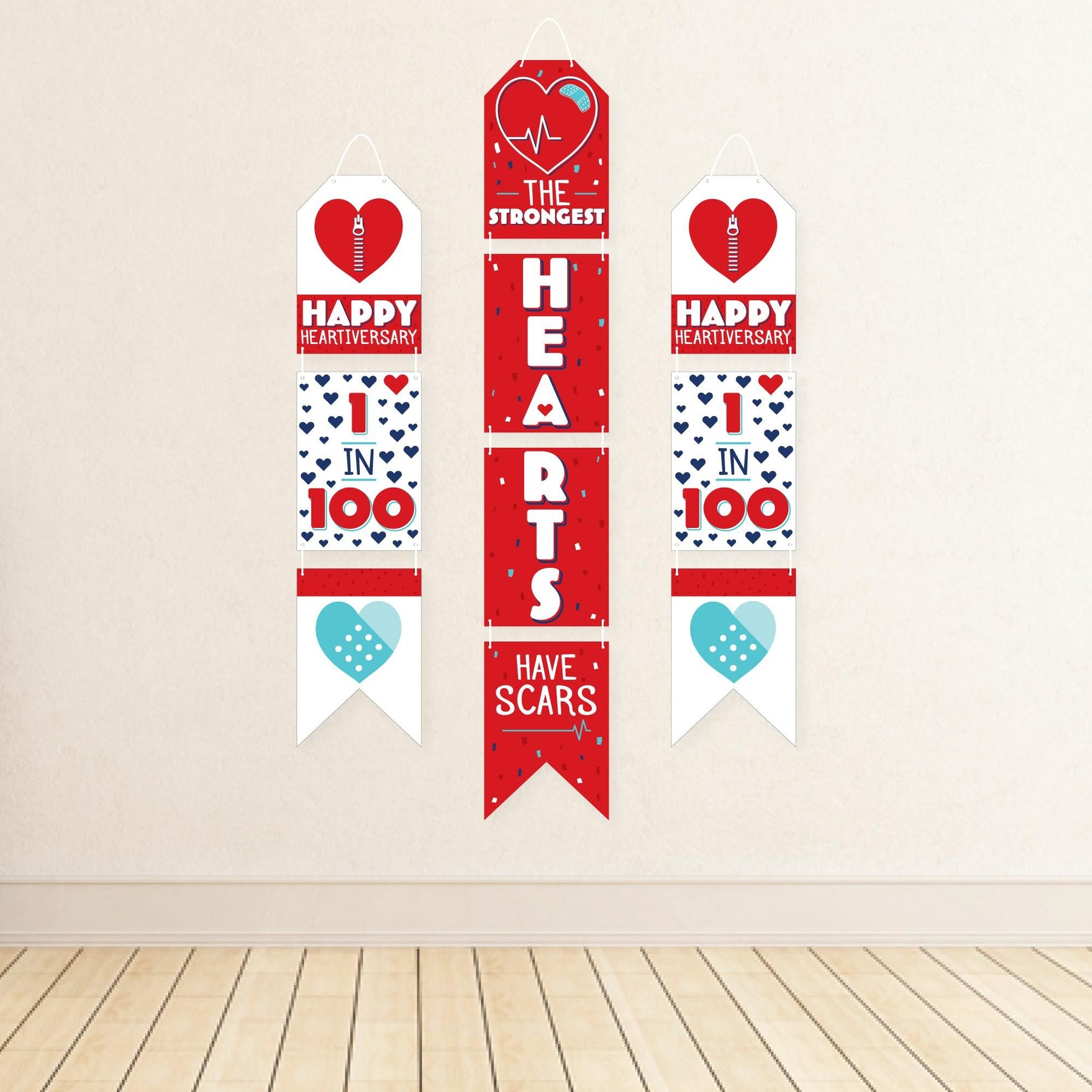 Give your celebration that wow-factor when you add Happy Heartiversary Indoor Door Decor to your CHD Awareness event. This must-have wall decoration kit includes 10 banner pieces professionally printed on heavy-duty cardstock paper. Quickly assemble each vertical hanging banner with the included cording and instructions. Each banner piece is numbered in sequence, making party decorating easy for even the last-minute hostess. Hang at the entrance of your event space, over the food or gift table, or any open wall space to create a fun focal point at your Happy Heartiversary Party.