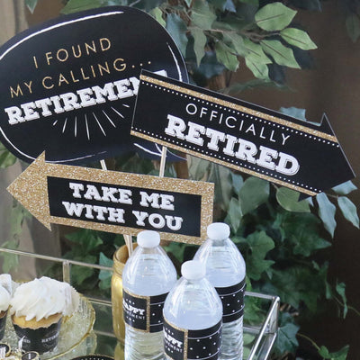 The perfect photo booth begins with fabulous photo booth props. Our printed and cut kit will help you easily create fun party photos at your Retirement Party. This Funny Happy Retirement prop kit comes with 10 pieces and is ready for quick assembly. Simply add the included dowels to each piece, attaching with the included clear stickers, and display alongside a fun photo booth backdrop. Your friends and family will love the fun photos they will create with this amazing 10 piece Funny Happy Retirement Photo Booth Prop Kit.