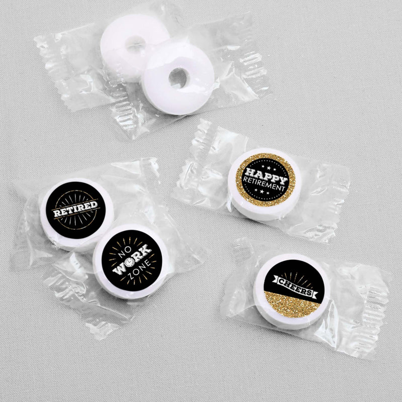 Give your party guests a Happy Retirement themed Hershey's® Kisses® party favor to enjoy during the event or take home and enjoy later. This set of Happy Retirement Hershey's® Kisses® stickers are a fun way to add a little flair to all areas of your party. Simply peel and stick each label to the bottom of a chocolate Kisses® candy, LifeSavers® candy or any other similar-sized round candy. Use your decorated candies scattered down the length of your buffet table, at your candy buffet or in party favor bags for your guests to take home. Each set of 108 stickers comes with 4 coordinating designs that everyone will adore. Hershey's® Kisses® stickers are the party supply you have been looking for to add a little extra touch to your celebration.