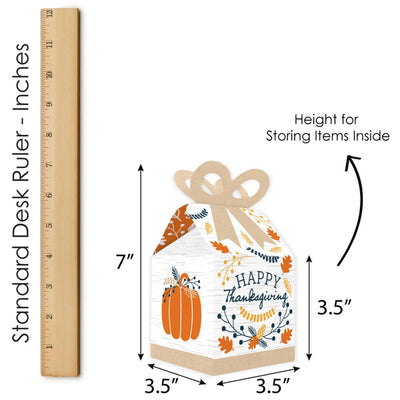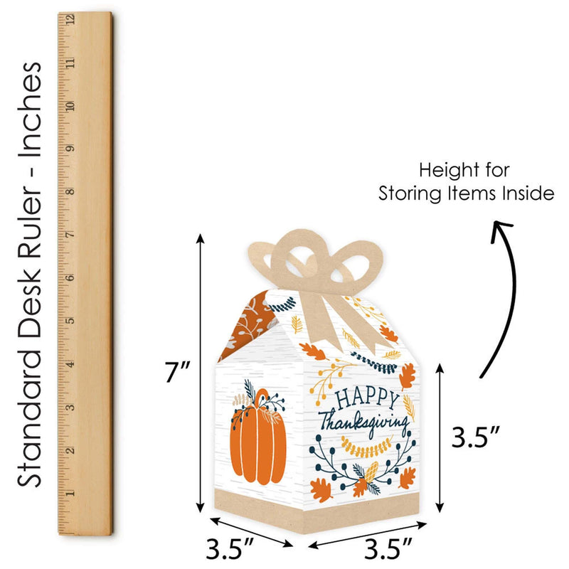 Happy Thanksgiving - Square Favor Gift Boxes - Fall Harvest Party Bow Boxes - Set of 12
