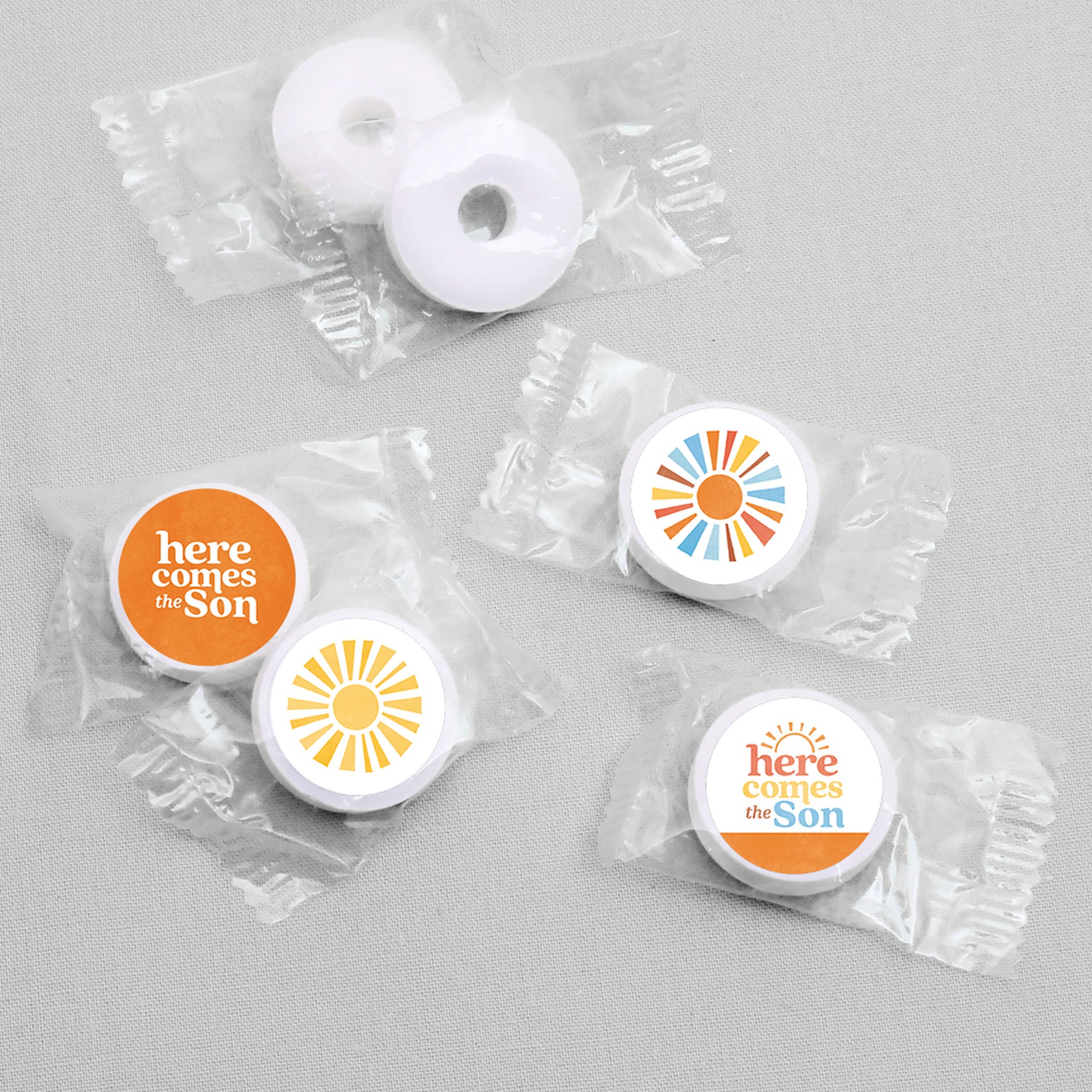 Add a Special Touch to Your Treats with Here Comes The Son Round Candy Stickers!