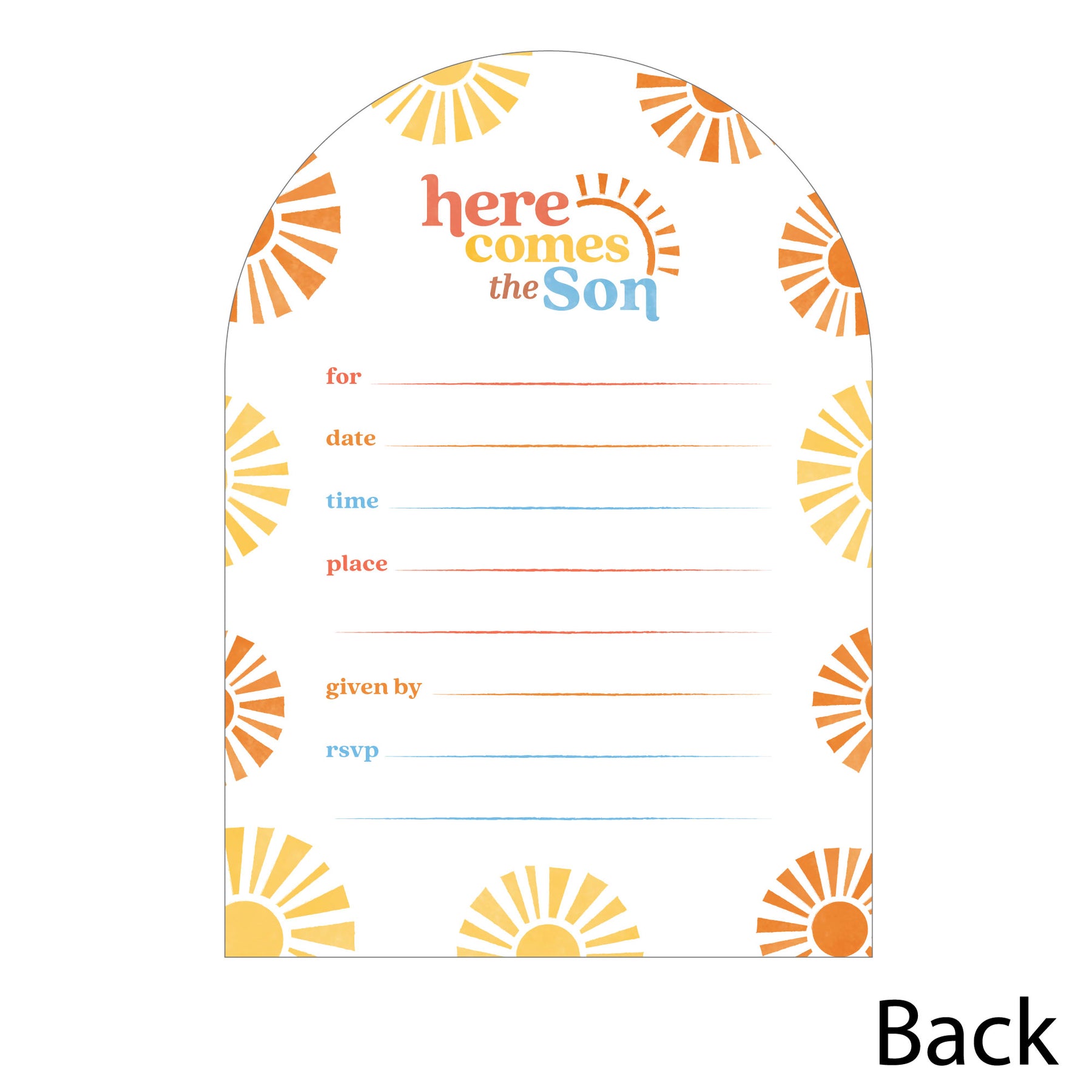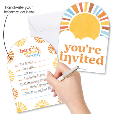 Here Comes The Son Shaped Fill-In Invitations - 12 Ct