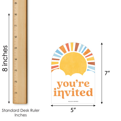 Invite friends and family to your retro inspired Baby Shower Party with Here Comes The Son invitation cards. These fun sunshine invites are printed on sturdy cardstock paper and have plenty of space to add the party details. Plus, their unique shape will be adored by all your guests. Each set of 12 shaped fill-in invitations includes 12 white envelopes, making it easy to get your party invitations into the mail. Begin planning the perfect Party with these invites!