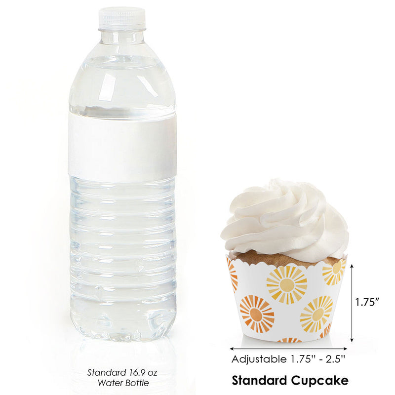 Introducing the new alternative to a traditional cake...Here Comes The Son cupcake wrappers! Boho Sun Cupcake wrappers are a simple, yet functional treat for each guests' dessert. These are a quick and easy, do-it-yourself project that will also spice up your treat table or each place setting. They're printed on premium-grade paper that's cut with a decorative edge, are meant to be placed on the cupcake after baking, and designed to fit easily around standard, frosted cupcakes. There's no need to spend hours in the kitchen decorating your own cupcakes when it's so easy to use ourHere Comes The Son baby shower cupcake wrappers! Don't forget to check out our coordinating cupcake picks to top them off!