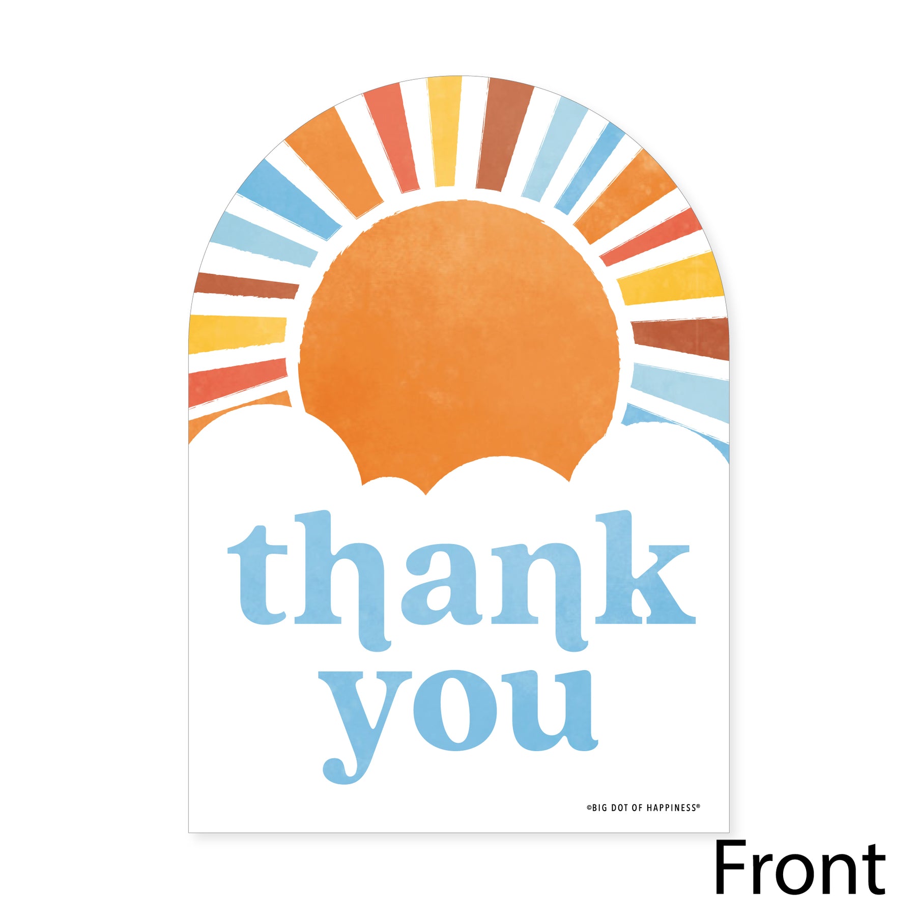 Show your appreciation with these charming Here Comes The Son Retro thank you cards. Each set includes 12 double-sided cards, printed on sturdy cardstock and featuring a bright sunshine theme. With plenty of space to write a personal message, these cards make it easy to express your gratitude. Plus, the set comes with 12 white envelopes, so you can easily send a heartfelt thank you by mail.