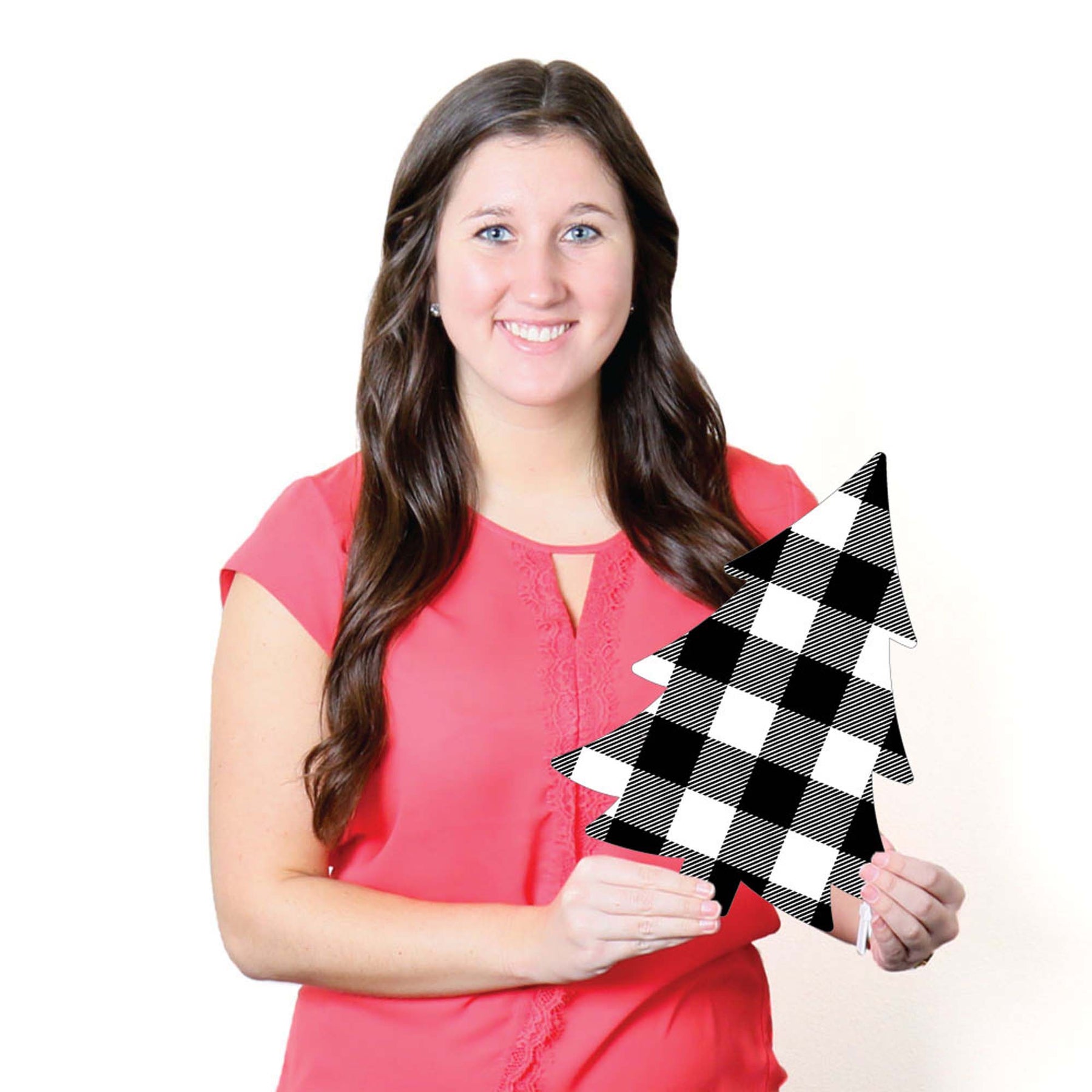 3 Count - Black and White Plaid Tree Shapes Measure 9.75" x 12.5"