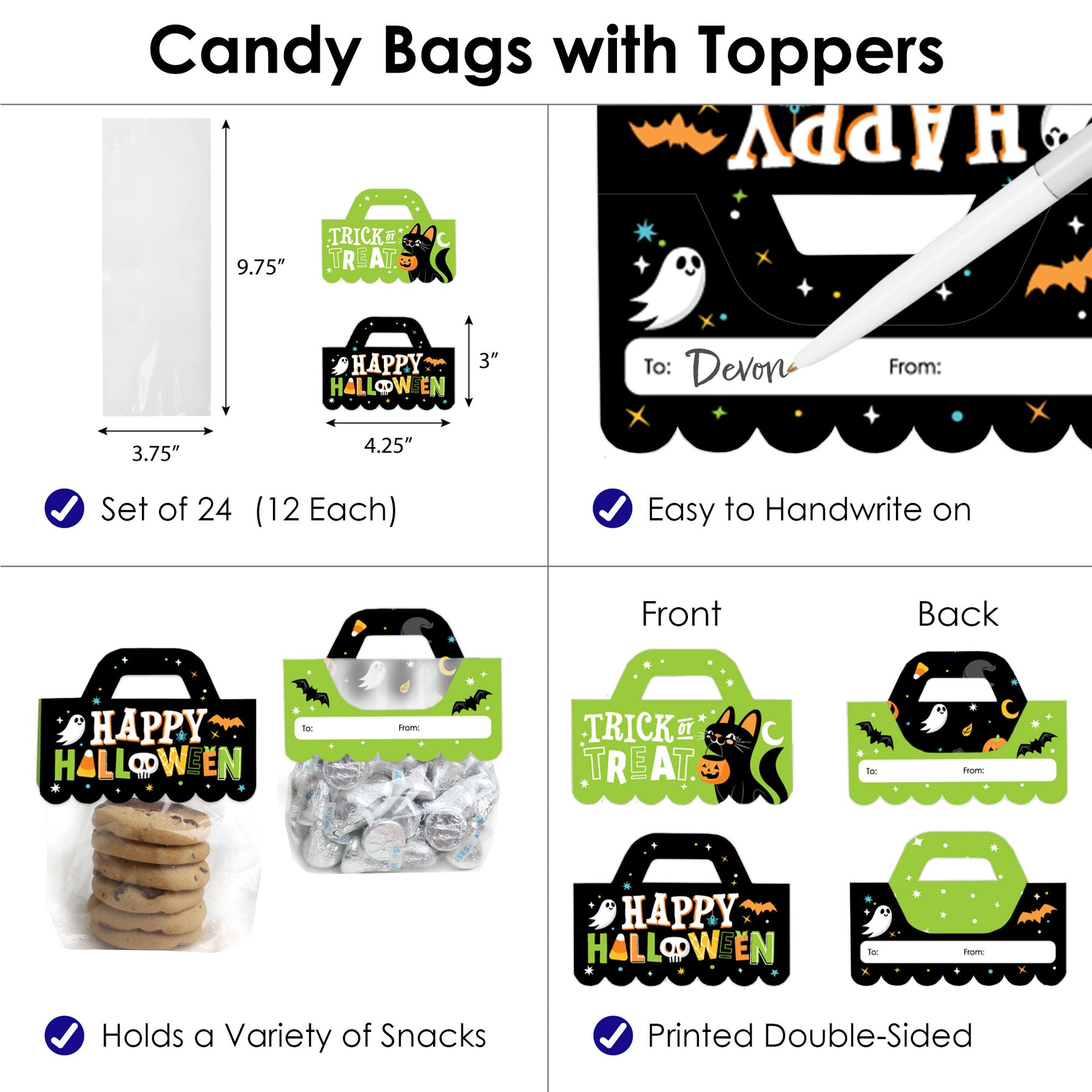 • Includes Set of 24 (12 Each) Candy Bags with Toppers - Candy Not Included