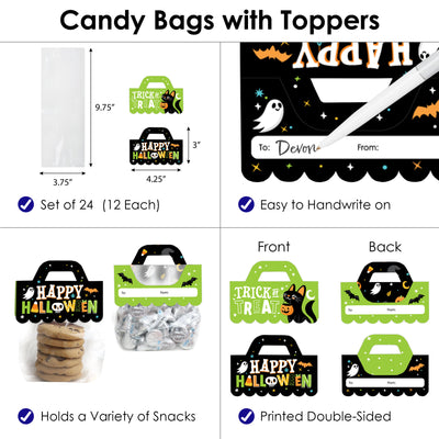 Jack-O'-Lantern Halloween Candy Bags With Toppers - 24 Ct