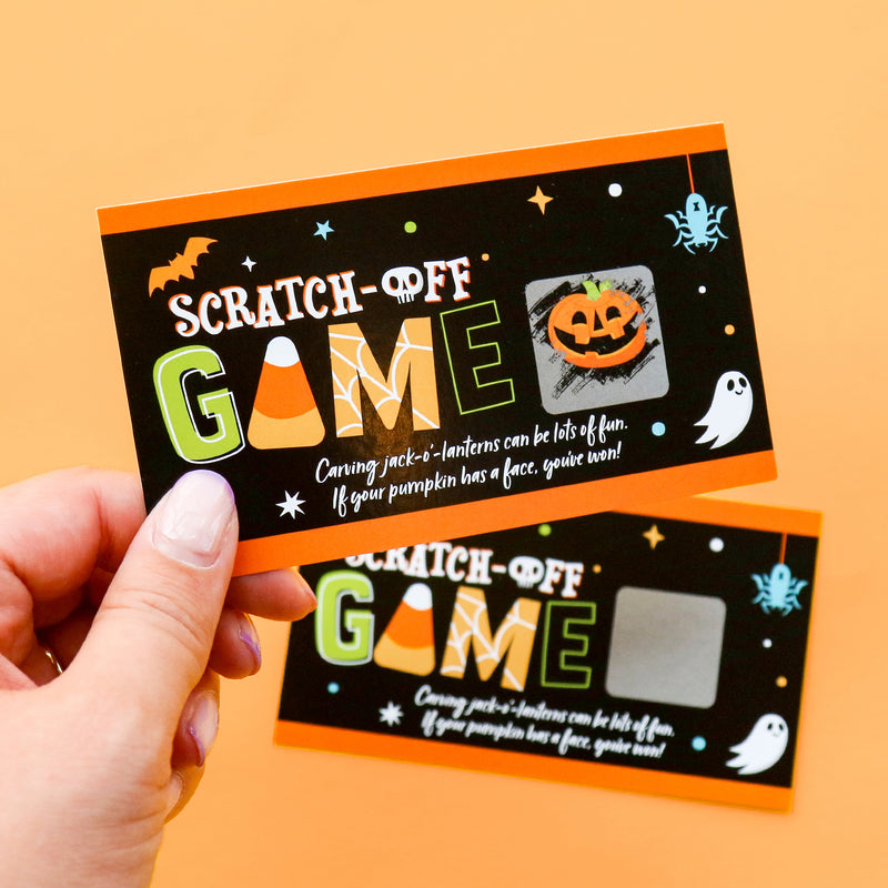 With these Jack-O'-Lantern Scratch-Off Cards, your Halloween party is sure to be a spook-tacular success!