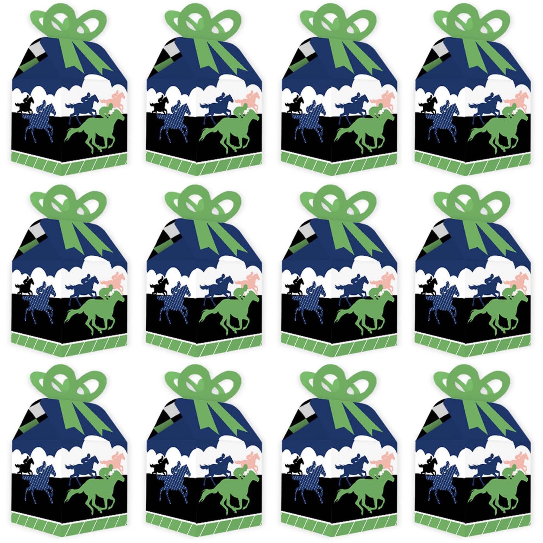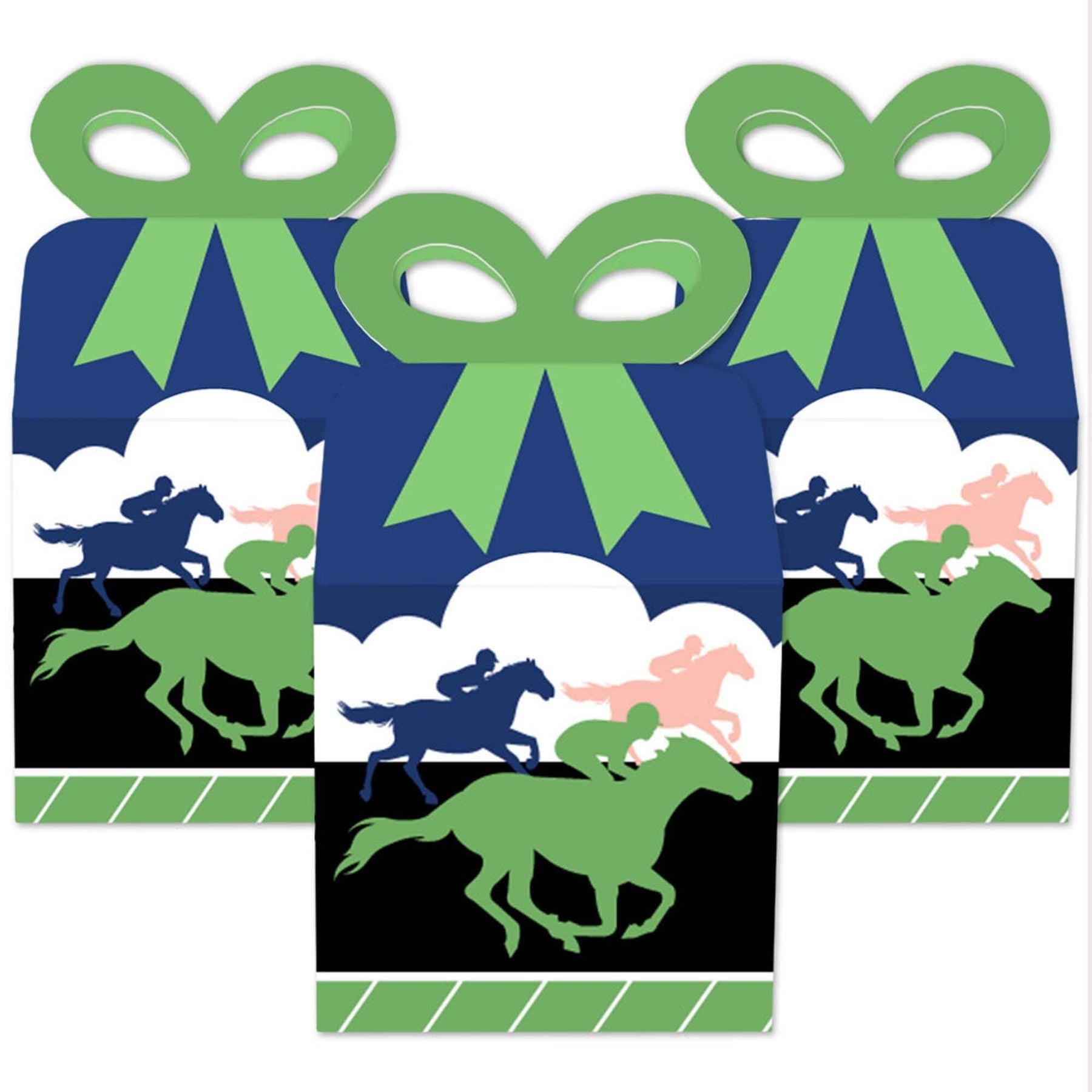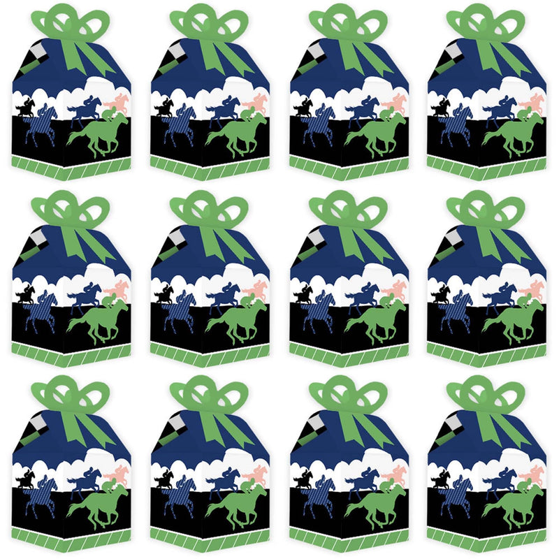 Kentucky Horse Derby - Square Favor Gift Boxes - Horse Race Party Bow Boxes - Set of 12