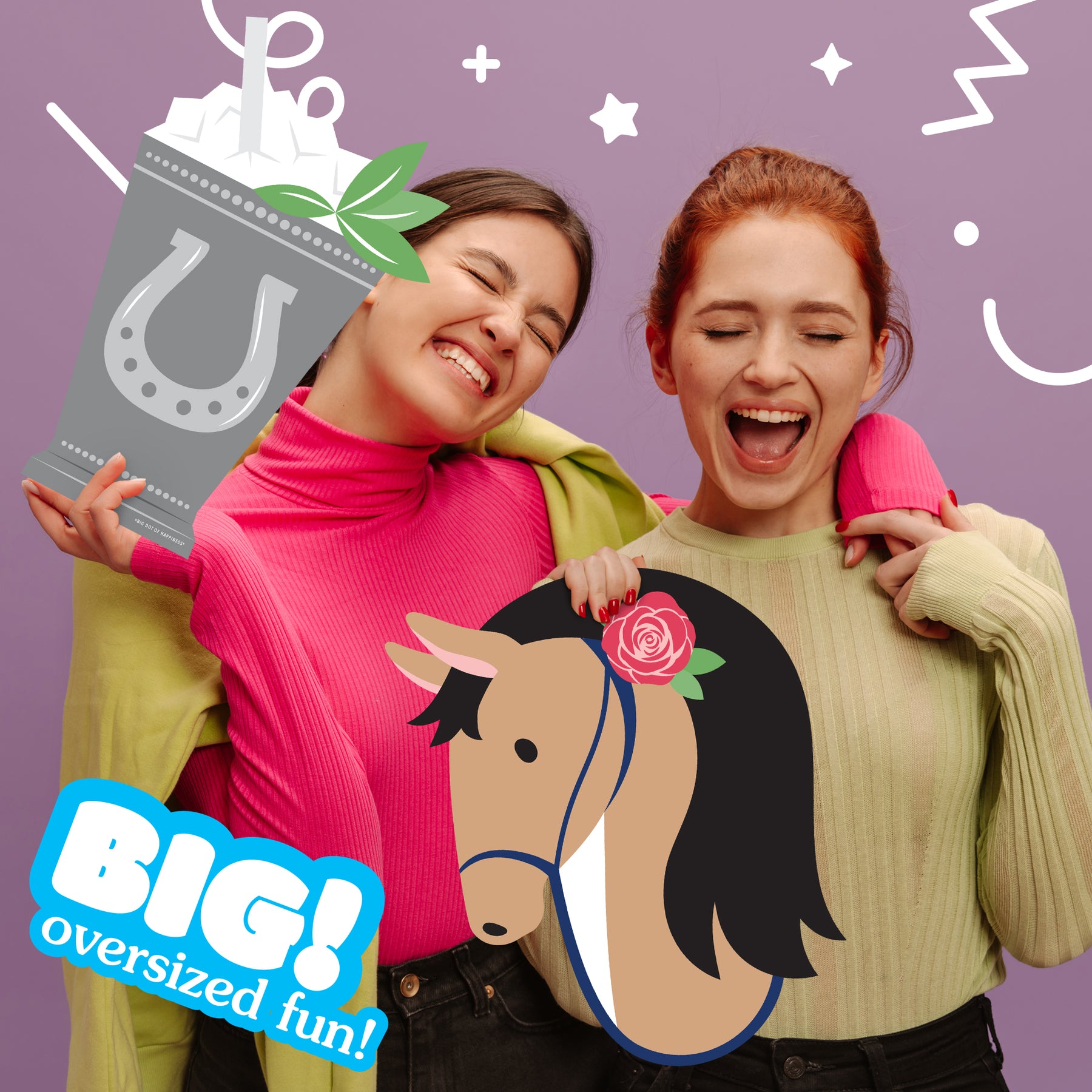 Grab your besties and get ready to have a blast with our Kentucky Horse Derby Large Photo Props. This set of 3 jumbo-sized picture props is a must-have and will add an extra dose of fun at any Party. Simply place them next to your photo booth station and watch your guests go wild! Alternatively, the props can also be adhered to the wall or displayed throughout your venue as party decorations! From selfies to group photos, capture all the fun with our photo props!
