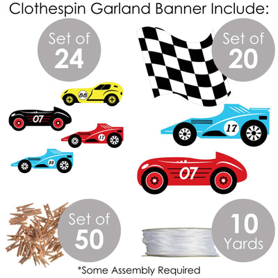Let's Go Racing - Racecar - Race Car Birthday Party or Baby Shower - Clothespin Garland Banner - 44 Pieces