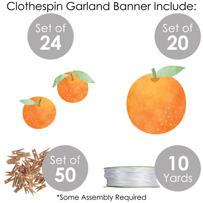 Little Clementine - Orange Citrus Baby Shower or Birthday Party - Clothespin Garland Banner - 44 Pieces