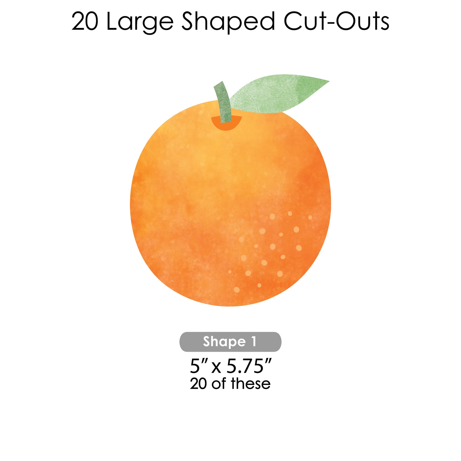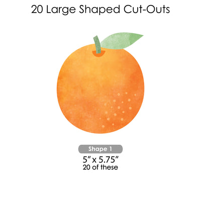 Easily decorate your Orange Citrus Baby Shower or Birthday Party with Little Clementine clothespin garland banner. This DIY banner kit includes 44-pieces of Little Clementine paper cut-outs, 50 mini clothespins, and white cord. Before hanging, plan out your desired pattern by alternating in sizes. Using a miniature clothespin, clip shapes on the included cord. Hang finished DIY garland banner at the entrance of your party, over mantelpiece, along buffet tables, or as high chair banner decoration. After the party, reuse the clothespins and cord to hang event photos as a fun keepsake. Little Clementine large cut-outs are professionally printed double-sided, small cut-outs are professionally printed with coordinating pattern on back, and all on sturdy cardstock paper with a photo-like shine.
