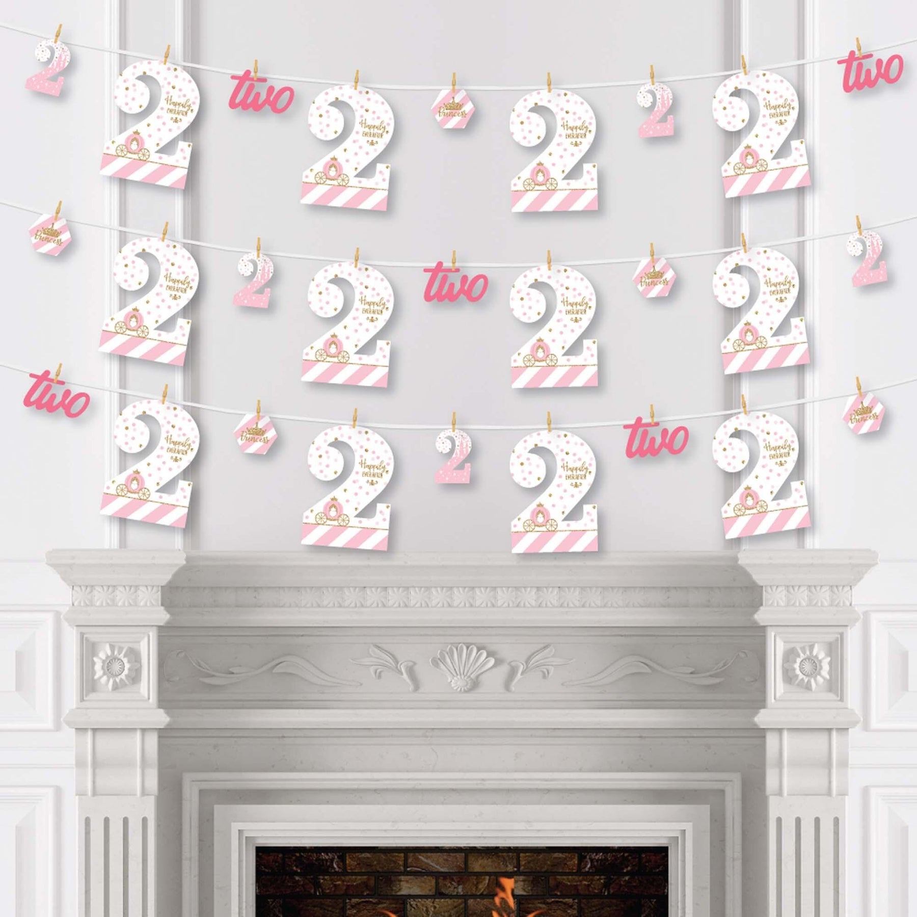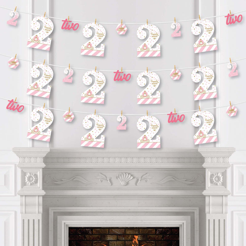 2nd Birthday Princess Clothespin Garland Banner - 44 Pc