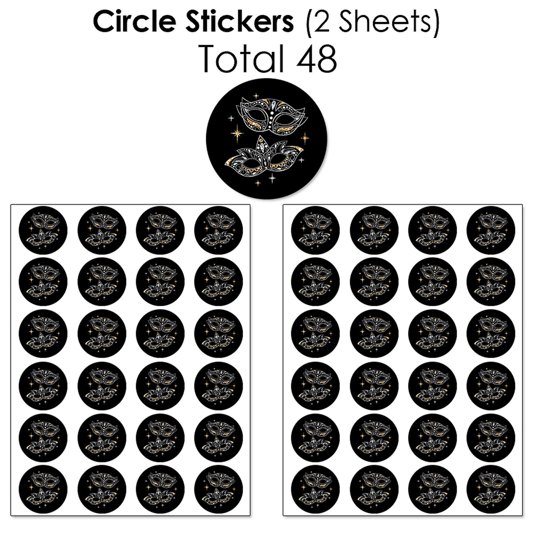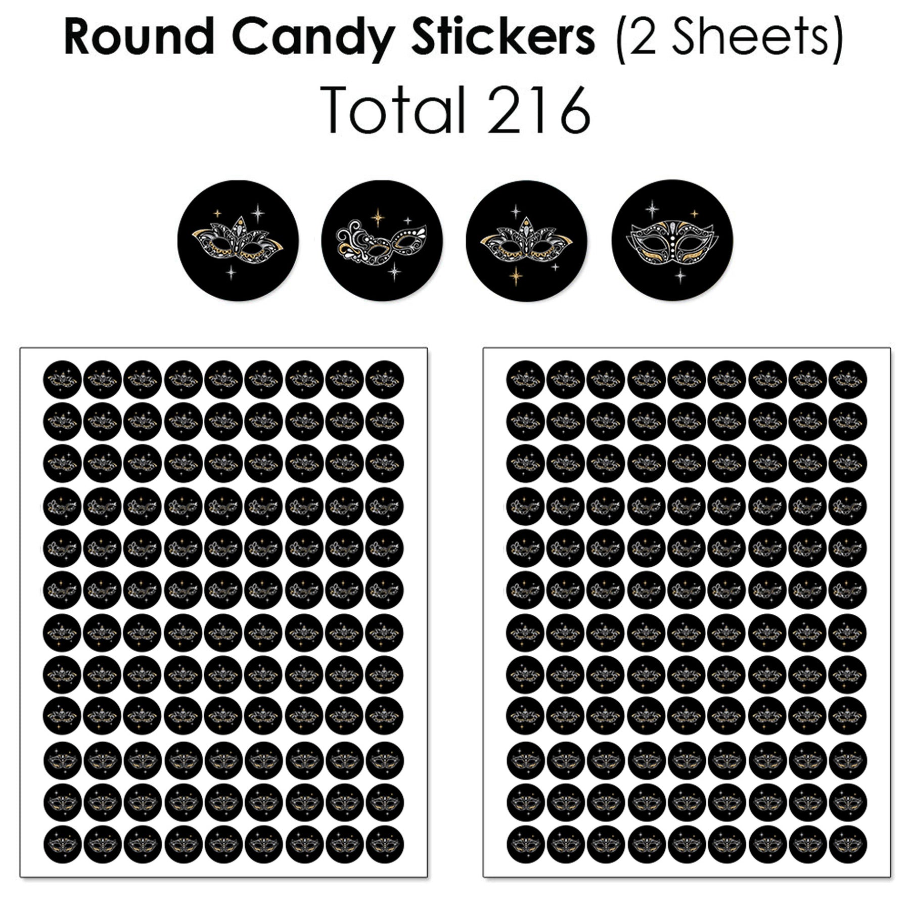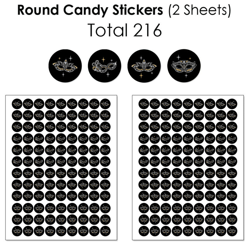 Masquerade - Prom or Venetian Mask Party Candy Favor Sticker Kit - 304 Pieces