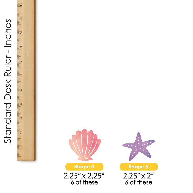 Mermaid paper embellishment cut-outs are an easy way to decorate for your Under the sea Birthday Party. This set of 24 paper die-cut shapes are cut from heavy card stock and will make all of your party craft ideas perfectly coordinate. Shaped paper cutouts can be attached to a toothpick and used as cupcake picks, glued to straws for a fun beverage bar, or scattered like confetti. They can even be used afterward as scrapbook embellishments when you make your ocean inspired party pages!