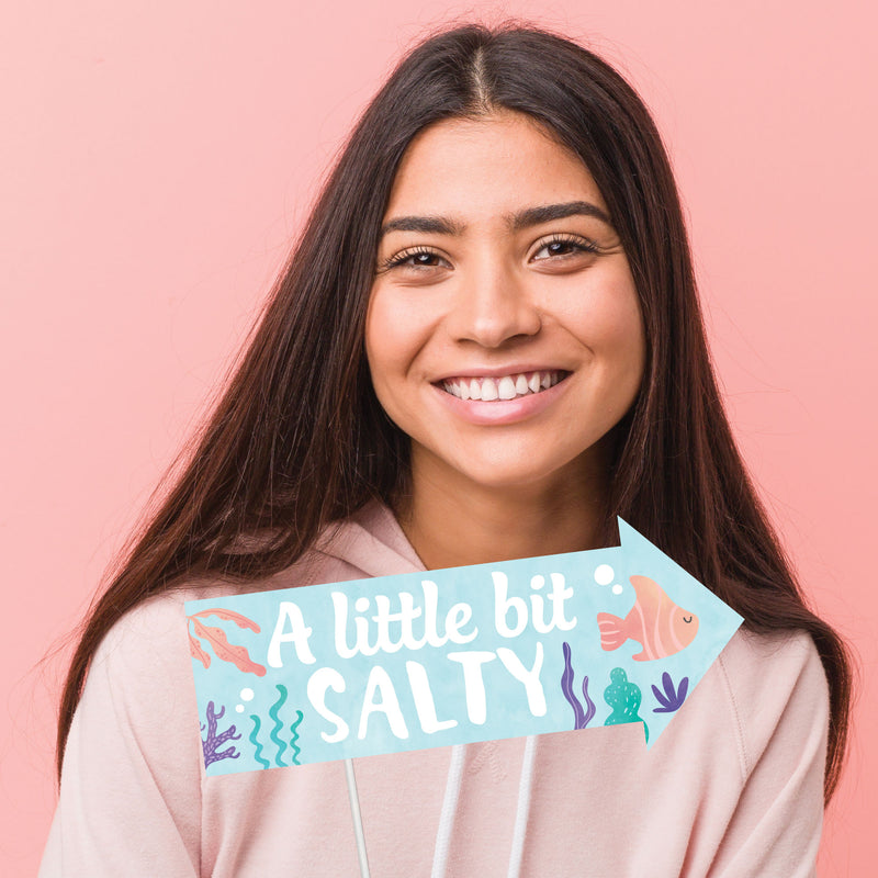 Transform your Mermaid Birthday Party into an unforgettable photo-op with our adorable under the sea-themed photo booth props! This 10-piece kit is printed, cut, and ready for easy assembly - just attach the included sticks with clear stickers, and you're all set. Pair these props with a fun backdrop, and watch as your friends and family create sweet, silly, and shareable moments. The perfect way to capture the joy of your Baby Shower!