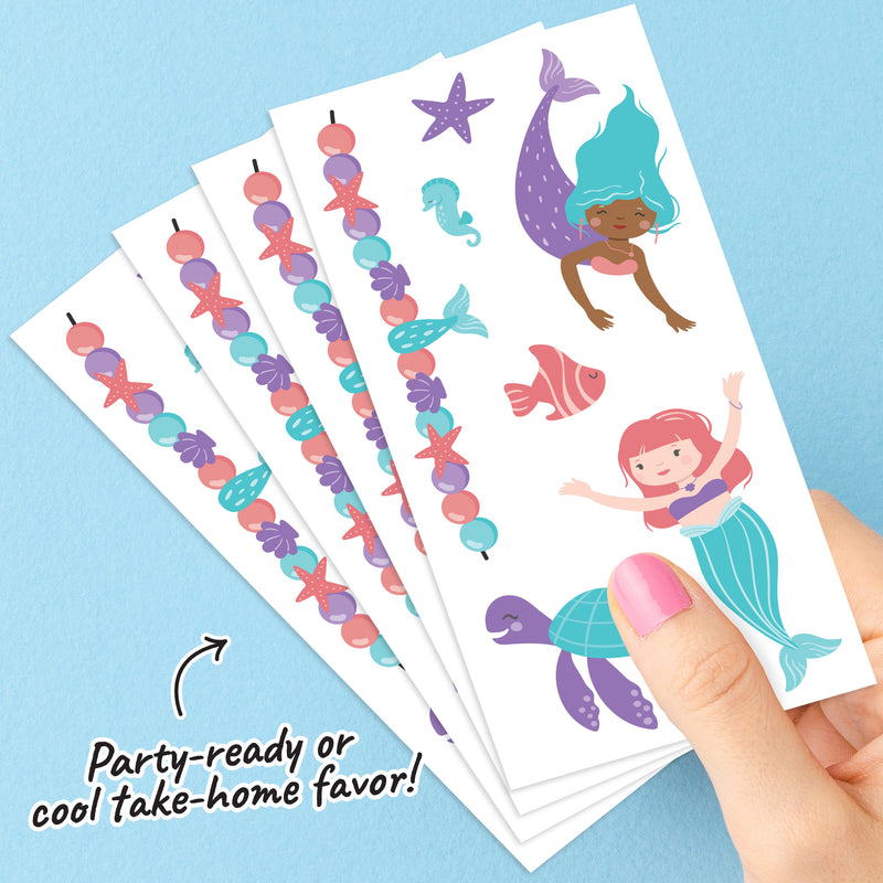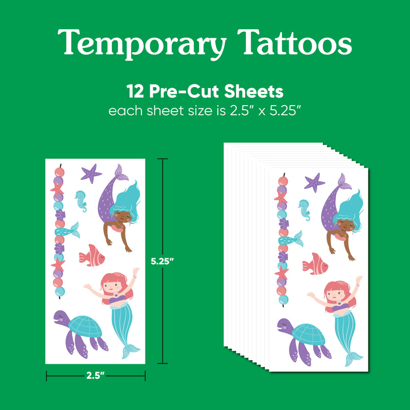 Dive into a sea of fun with our Mermaid Temporary Tattoos! This set includes 12 pre-cut sheets of stunning mermaid designs, perfect for kids who love the ocean. These colorful tattoos make great party favors or a fun tattoo station at your celebration.