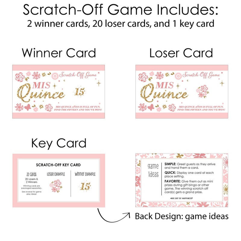 Mis Quince Anos - Quinceanera Sweet 15 Birthday Party Scratch-Off Cards: