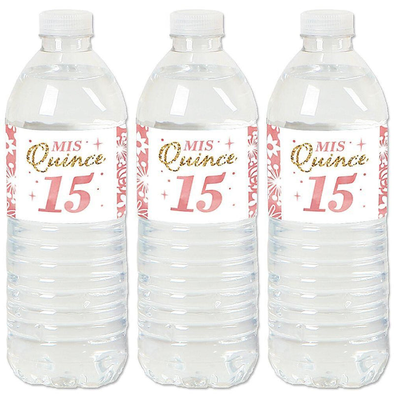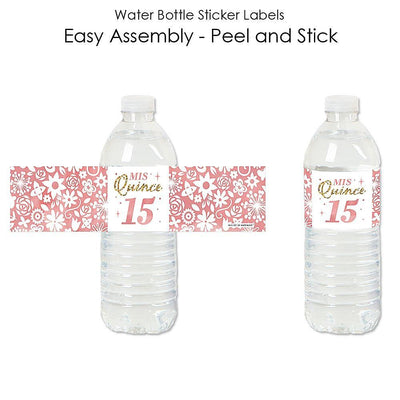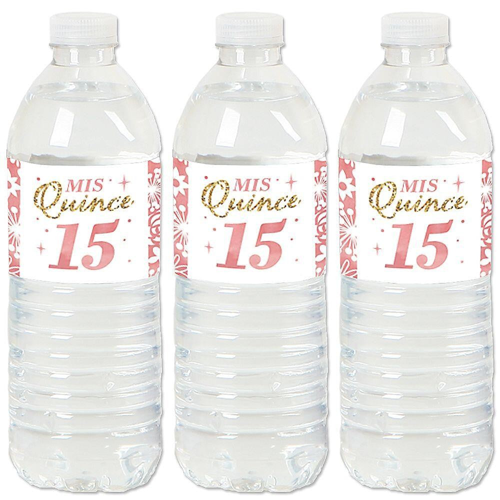 Mis Quince Anos - Quinceanera Sweet 15 Birthday Party Water Bottle Sticker Labels: