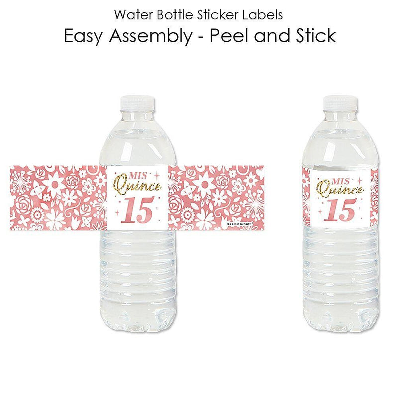 There is no better way to decorate a plain water bottle than with a Mis Quince Anos water bottle label! Each water bottle label coordinates with the rest of the Mis Quince Anos theme and will add a special flair to your event. Simply peel and stick your water bottle label to any beverage container for a refreshing treat! Self-adhesive water bottle labels are even waterproof so you can chill all of your favorite beverages and they will look as amazing as can be when you serve them.
