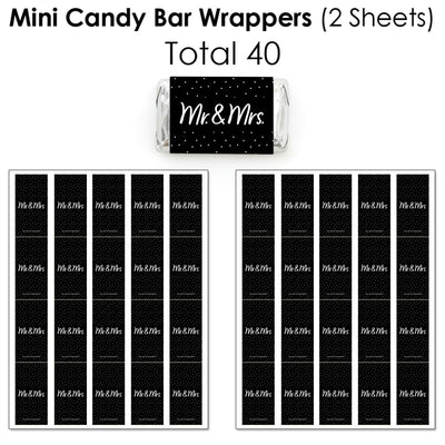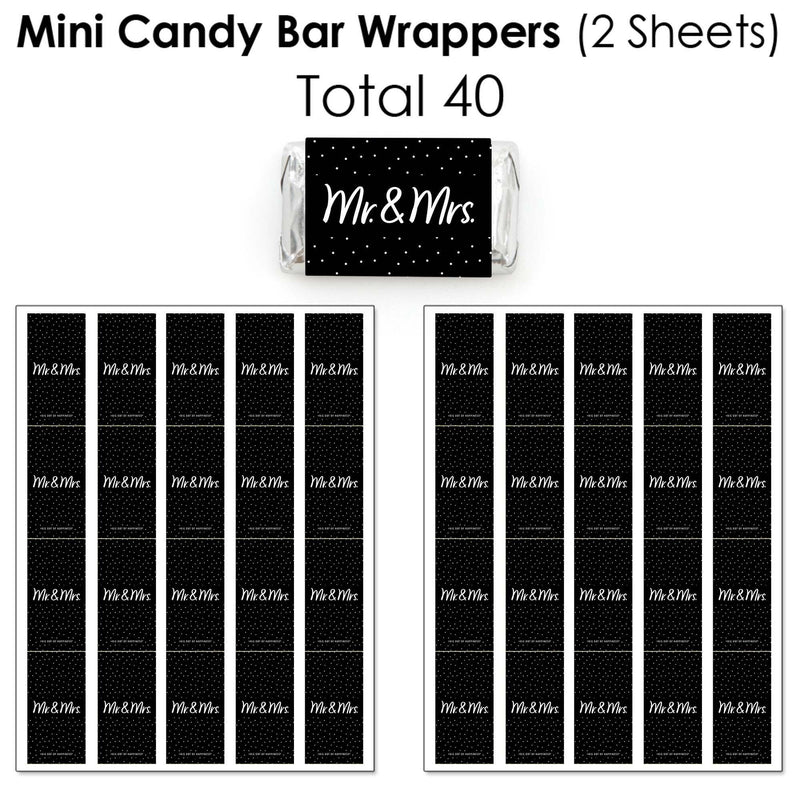 Mr. and Mrs. - Mini Candy Bar Wrappers, Round Candy Stickers and Circle Stickers - Black and White Wedding or Bridal Shower Candy Favor Sticker Kit - 304 Pieces