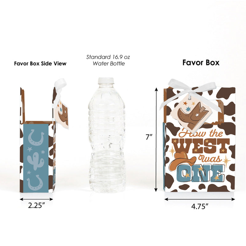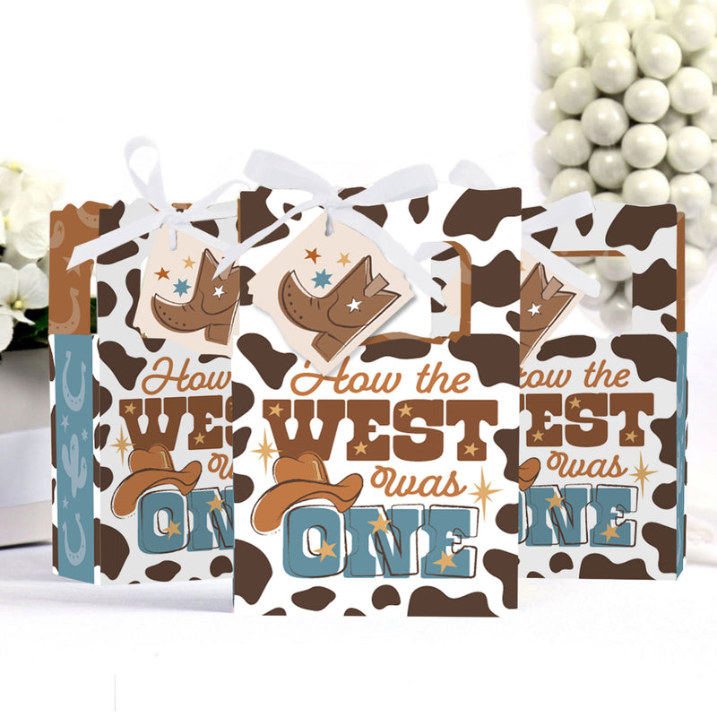 My First Rodeo favor boxes are the perfect packaging for your special favor or sweet treat! Each favor box can be set at individual place settings, or on a gift table to incorporate your chosen theme. They come with a coordinating gift card that can be personalized inside by you with an appreciative message for each individual guest. Also included is a solid colored ribbon to attach the gift card. The western favor boxes are an effortless way to make your gift-giving and decorating a cinch!