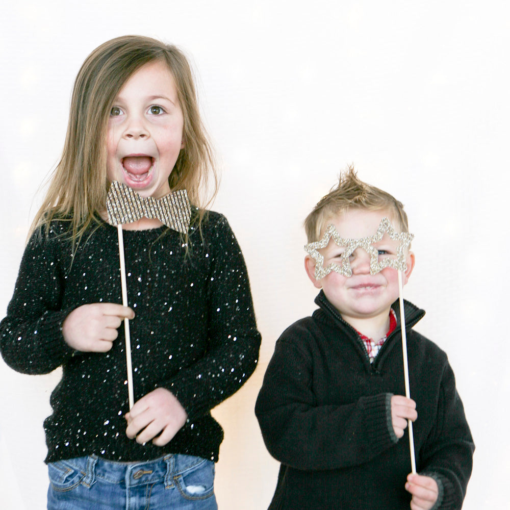 The perfect photo booth begins with fabulous photo booth props. Our printed and cut kit will help you easily create fun party photos at your New Year's Eve party. This party photo booth props kit comes with 20 pieces, and ready for quick assembly. Simply add the included prop kit sticks to each prop, attaching with the included clear stickers, and display alongside a fun photo booth backdrop. Your party guests will love the mustaches, bow ties, lips, glasses, hat, champagne glasses, and talk bubbles!