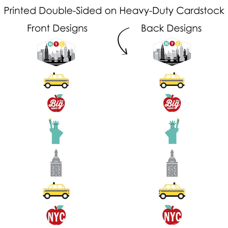 Whether hosting a large group celebration with multiple tables or inviting your closest friends over for a NYC Cityscape - New York City party, create easy DIY party centerpieces with our 35-piece showstopper table toppers. NYC Cityscape table topper cut-outs are professionally printed double-sided on sturdy cardstock paper with a photo-like shine and include 35 table topper sticks and clear stickers for at-home assembly. Add assembled centerpiece sticks to floral vases, candy jars, or any sturdy container to place in the center of dining tables, at candy buffets, or the party's welcome entrance.