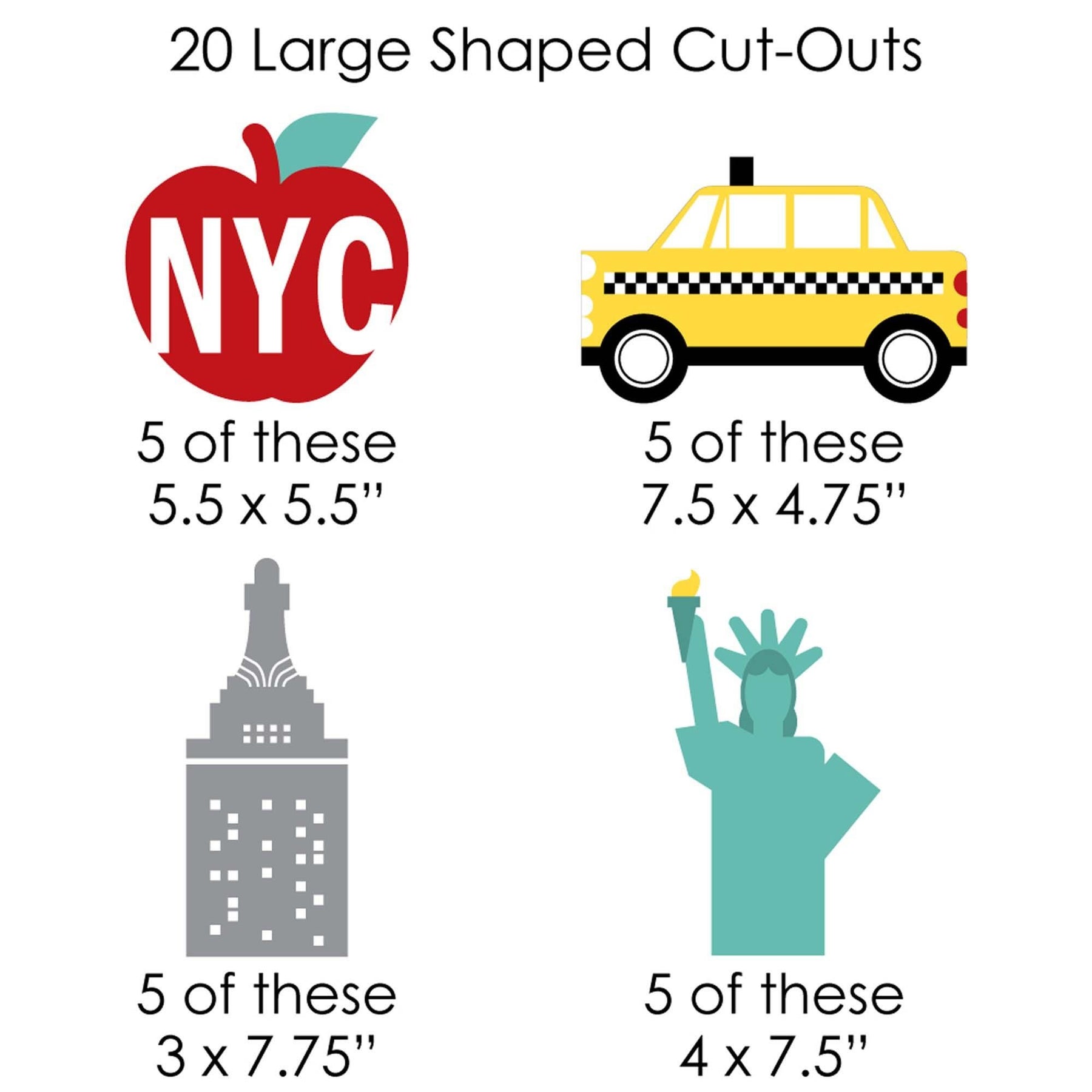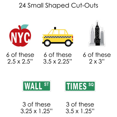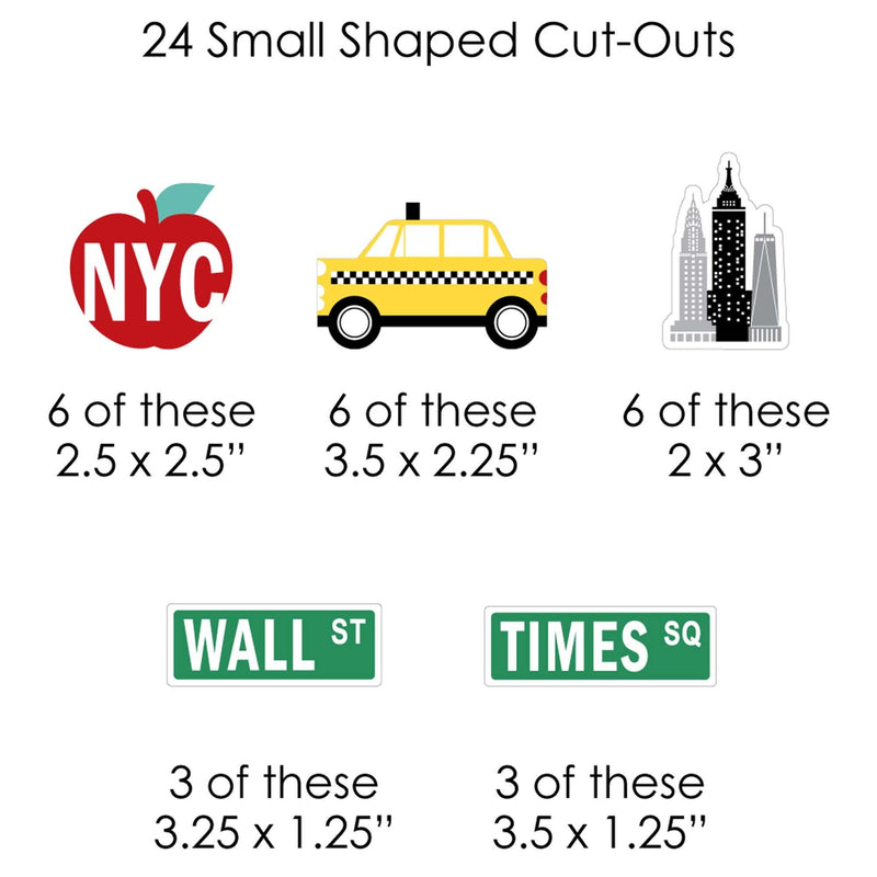 Easily decorate your New York City Party with NYC Cityscape clothespin garland banner. This DIY banner kit includes 44-pieces of NYC Cityscape paper cut-outs, 50 mini clothespins, and white cord. Before hanging, plan out your desired pattern by alternating in sizes. Using a miniature clothespin, clip shapes on the included cord. Hang finished DIY garland banner at the entrance of your party, over mantelpiece, along buffet tables, or as high chair banner decoration. After the party, reuse the clothespins and cord to hang event photos as a fun keepsake. NYC Cityscape large cut-outs are professionally printed double-sided, small cut-outs are professionally printed with coordinating pattern on back, and all on sturdy cardstock paper with a photo-like shine.