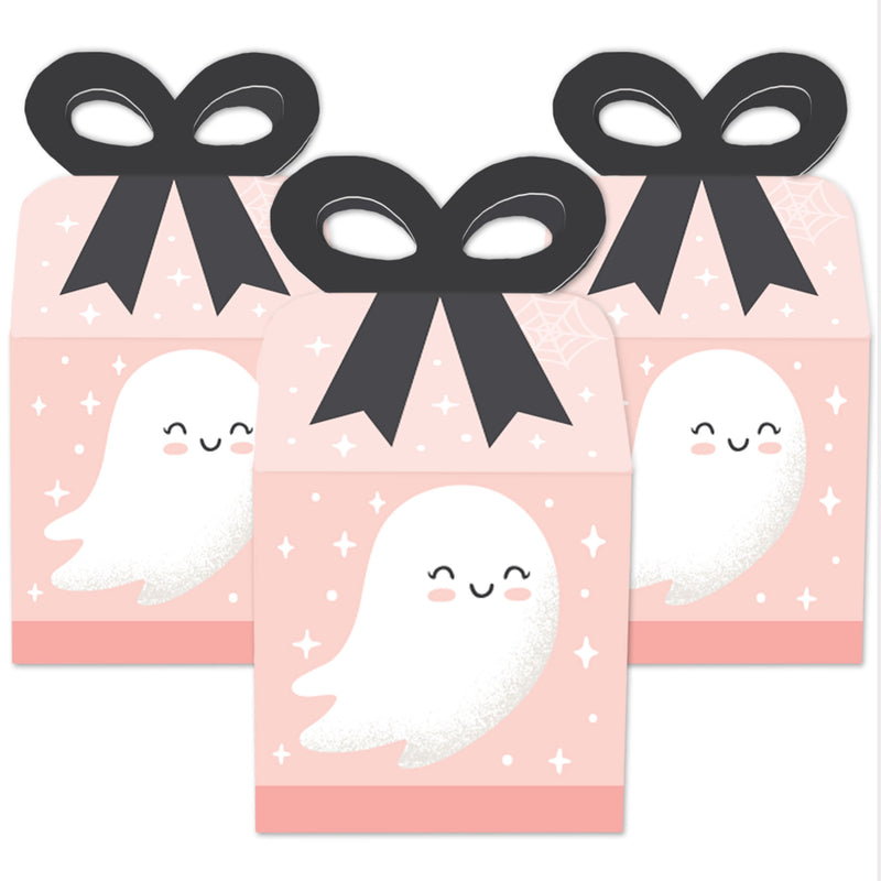 Pastel Halloween - Square Favor Gift Boxes - Pink Pumpkin Party Bow Boxes - Set of 12