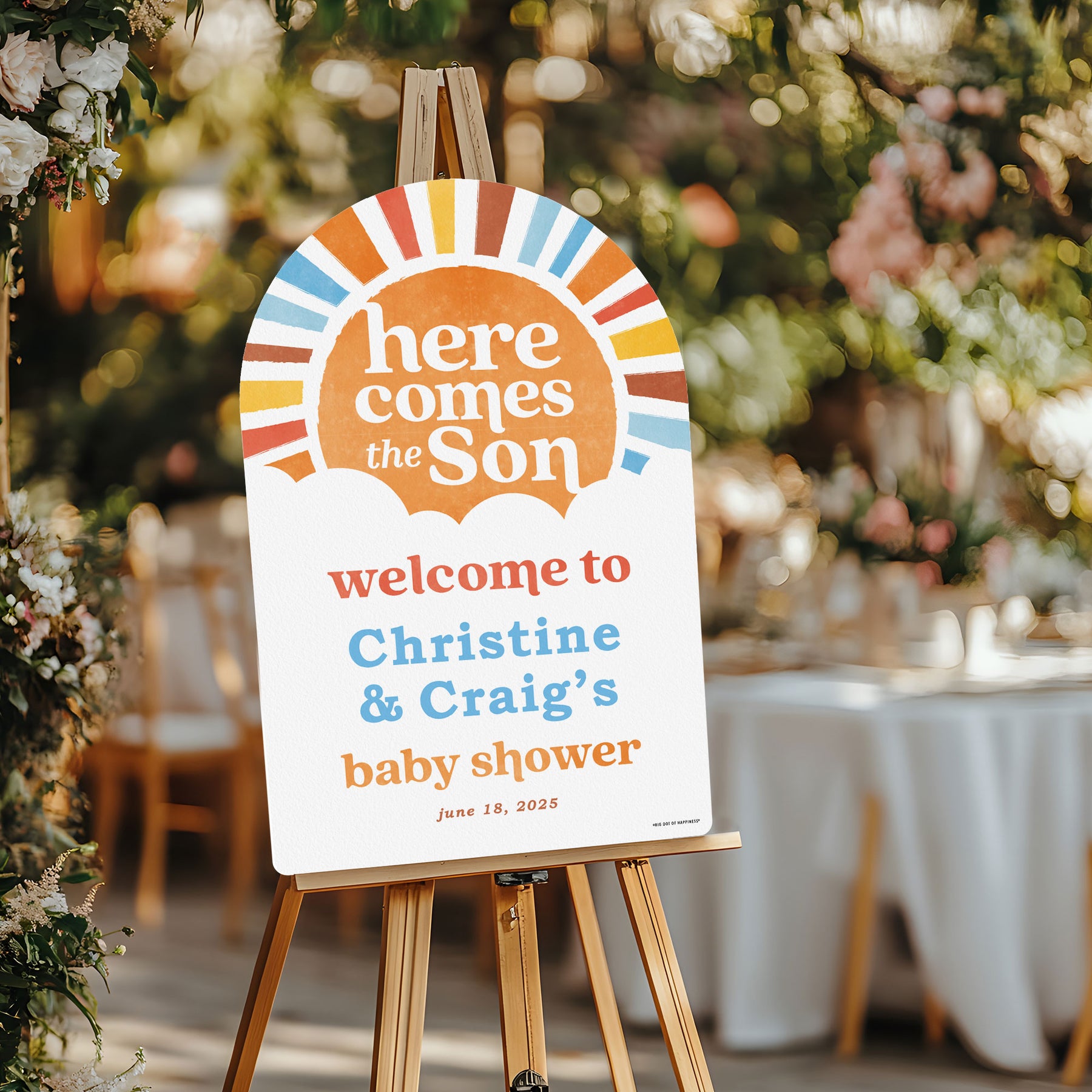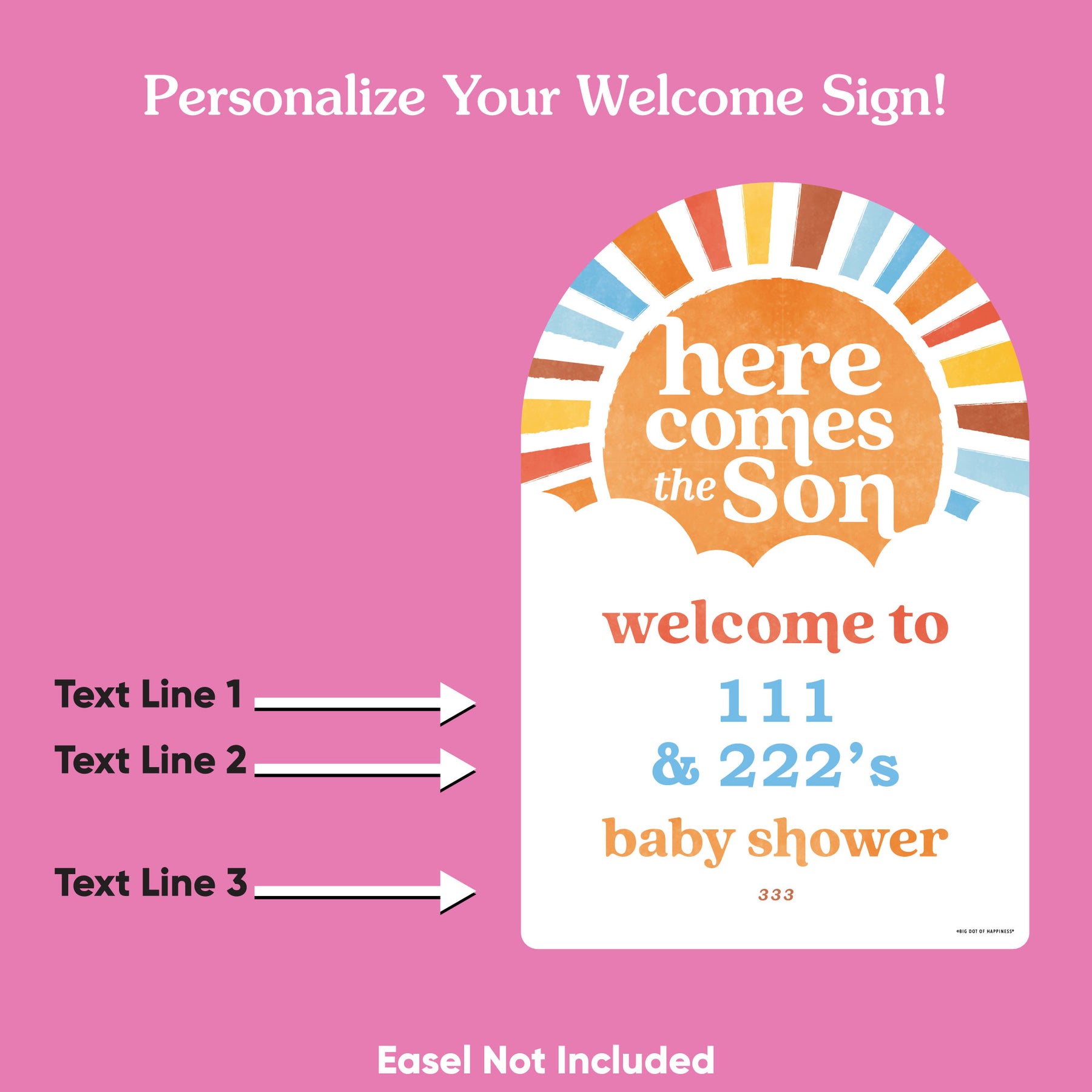 Personalized Text Here Comes The Son Baby Shower Welcome Sign (Select Your Size)