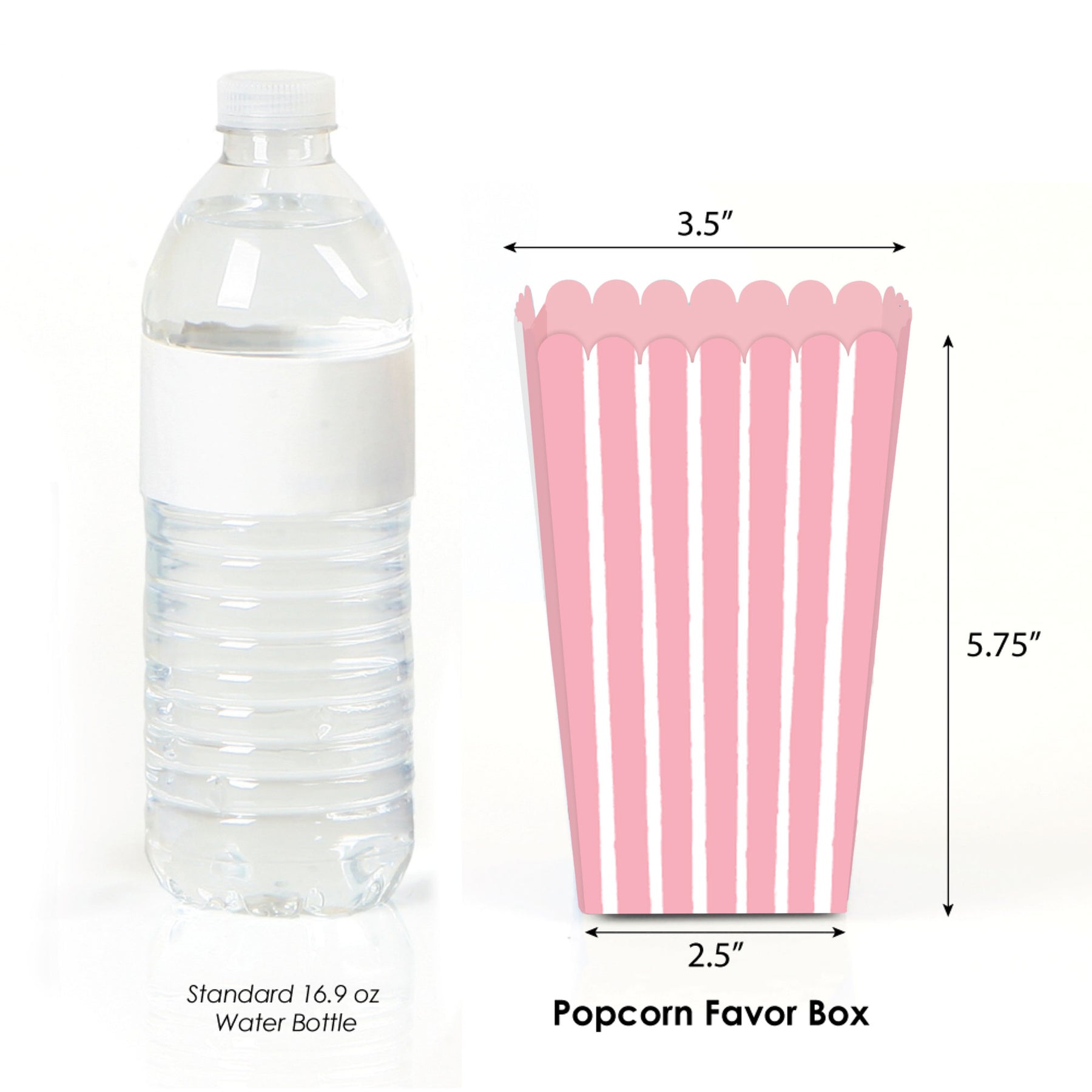 Your guests will not go hungry when you serve them sweet or salty snacks in these Pink Stripes popcorn boxes.