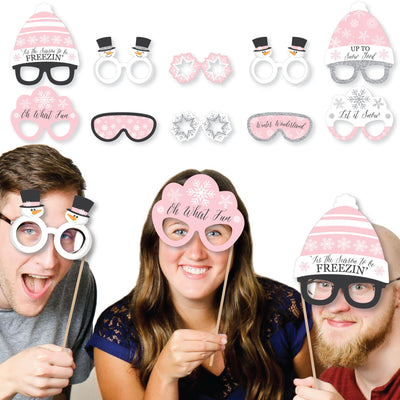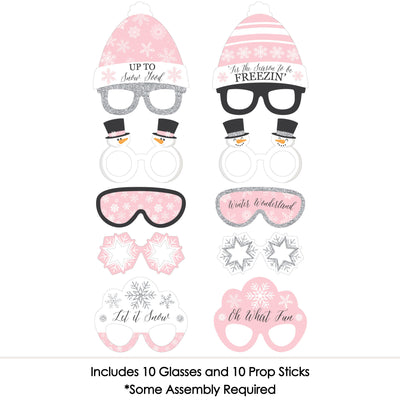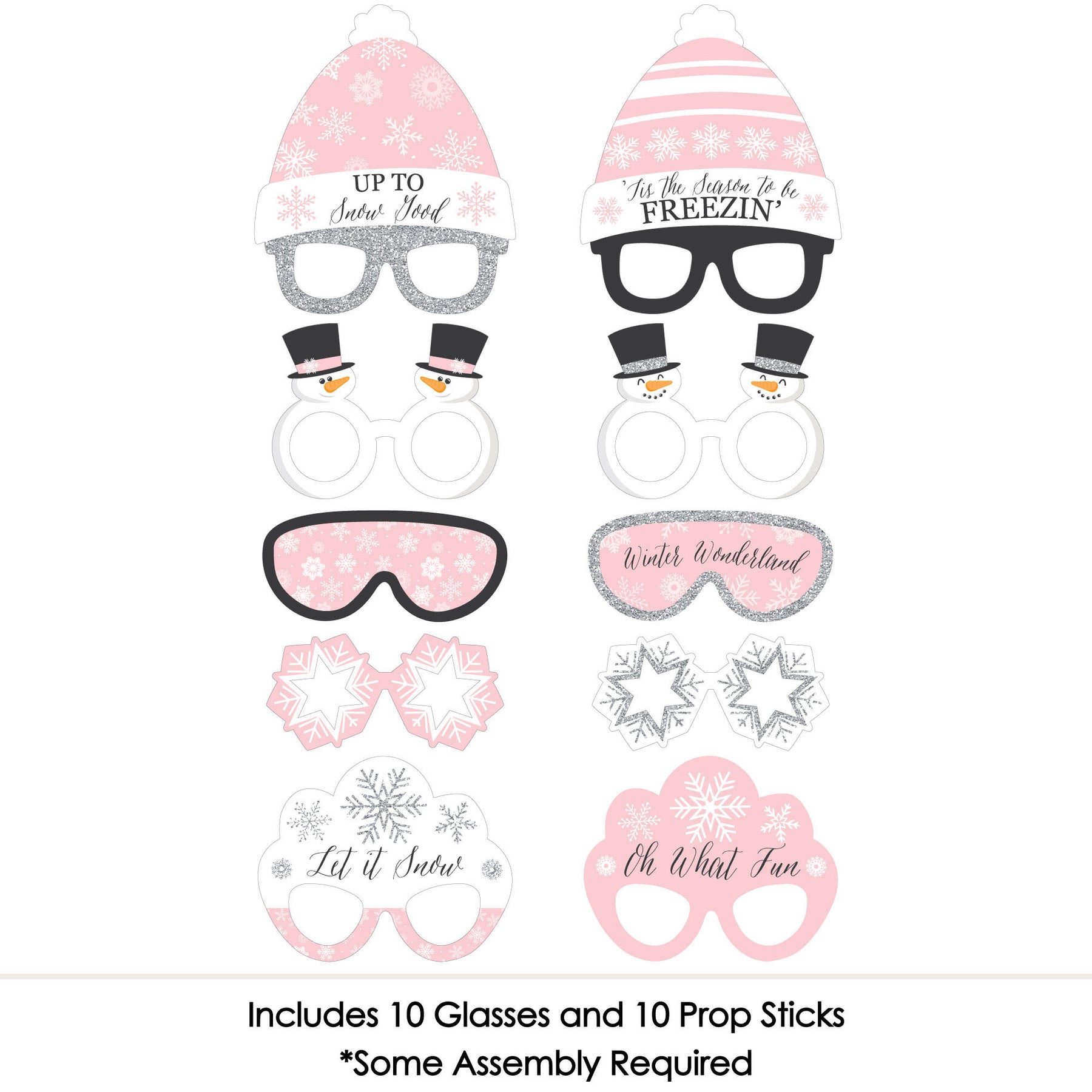 Pink Winter Wonderland Glasses - Paper Card Stock Holiday Snowflake Birthday Party and Baby Shower Photo Booth Props Kit - 10 Count