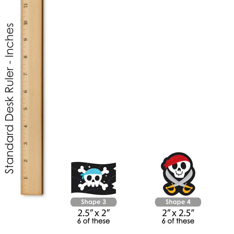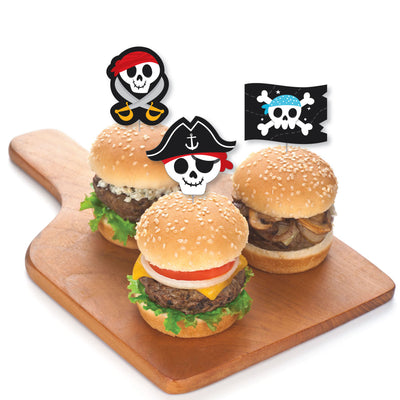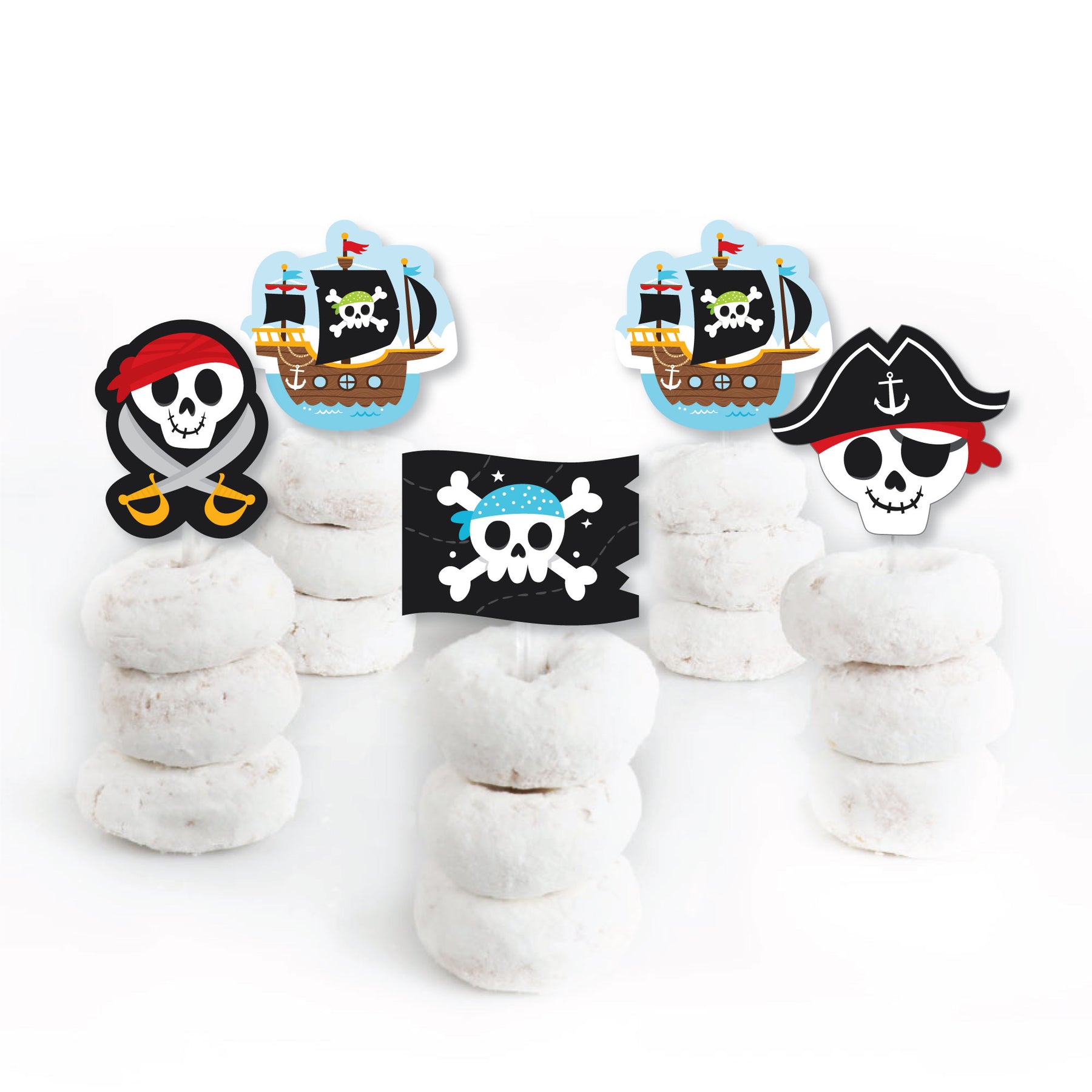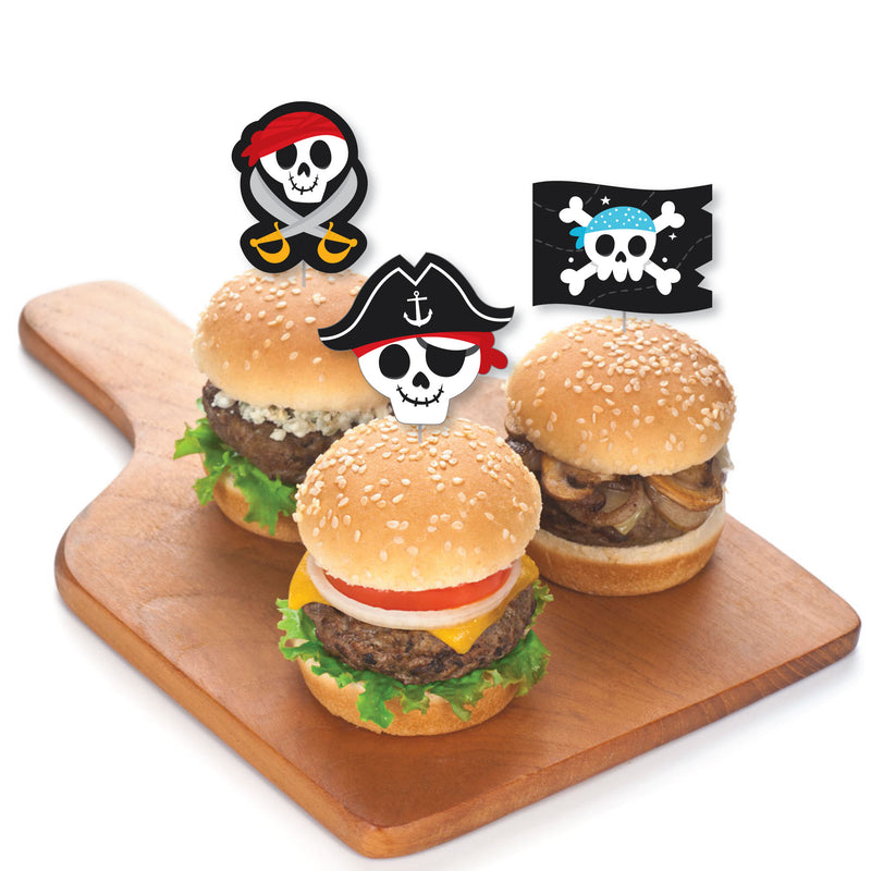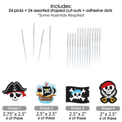 Create a unique dessert bar at your Skull Birthday Party with Pirate Ship Adventures Dessert Cupcake Toppers. This do-it-yourself kit includes clear treat picks and fun shaped cut outs. Simply attach each double-sided paper cut out to a clear plastic pick with the included clear stickers. Dessert Cupcake Toppers look great on standard cupcakes or add them to other baked goodies such as brownies or donuts. Other appetizers and miniature fruit kabobs are also easy to make with these fun food picks. Get creative and bring all your party ideas to life with Pirate Ship Adventures Dessert Cupcake Toppers.