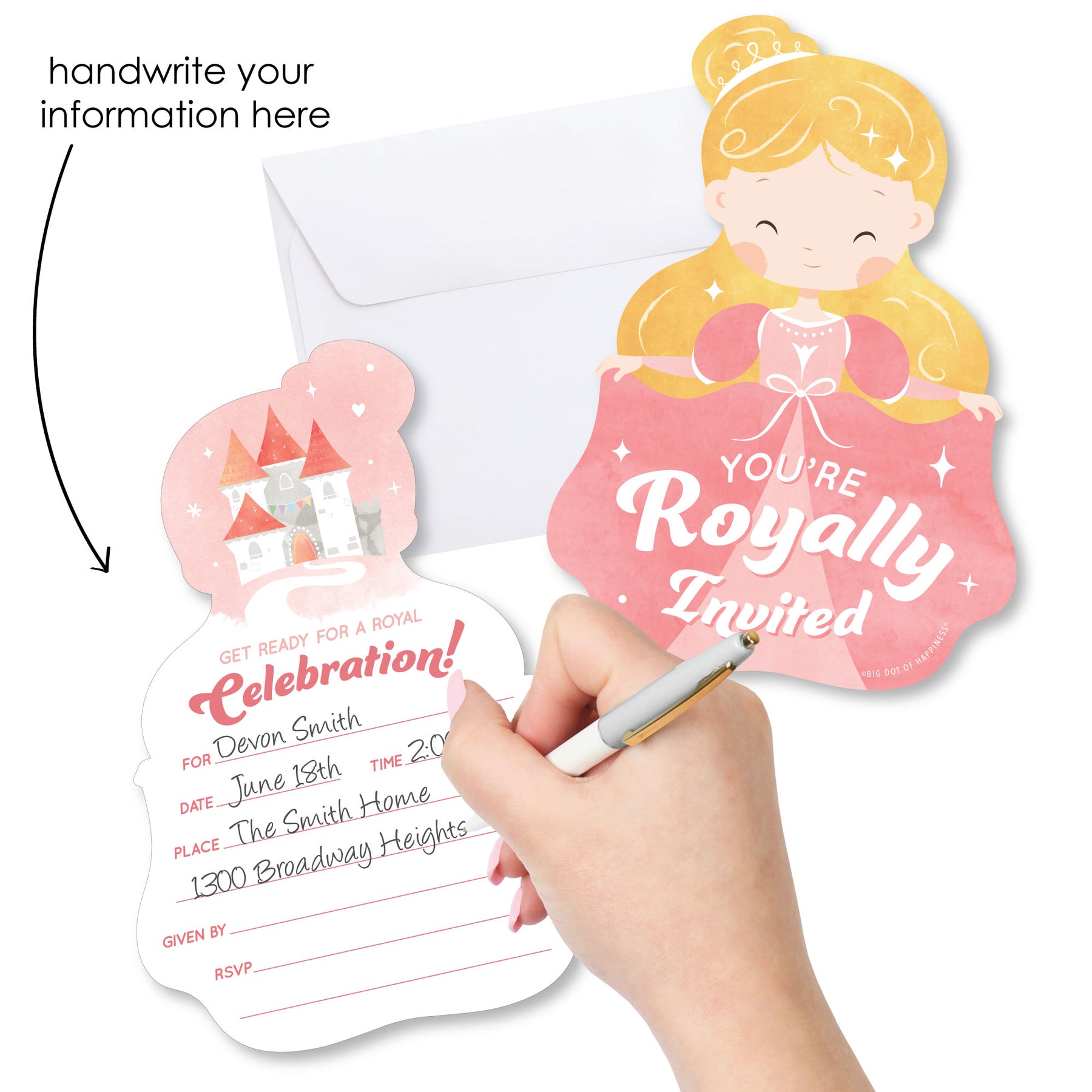 Invite friends and family to your royal fairytale-inspired Birhtday Party with Princess invitation cards. These fun invites are printed on sturdy cardstock paper and have plenty of space to add the party details. Plus, their unique shape will be adored by all your guests. Each set of 12 shaped fill-in invitations includes 12 white envelopes, making it easy to get your party invitations into the mail. Begin planning the perfect Party with these invites!