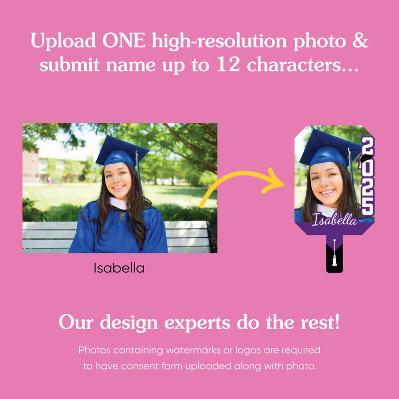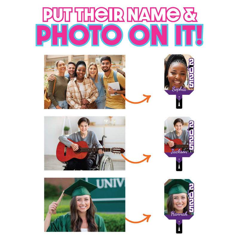 Whether it’s a high school or college grad party, celebrate with the Class of 2026 Photo Cutout Paddle! This custom head cutout is approx. 13 inches tall, including the handle, making it easy to hold. Just upload a photo, add a name, and we’ll handle the rest!