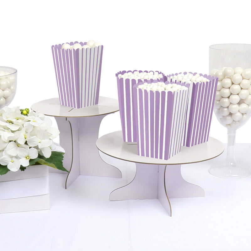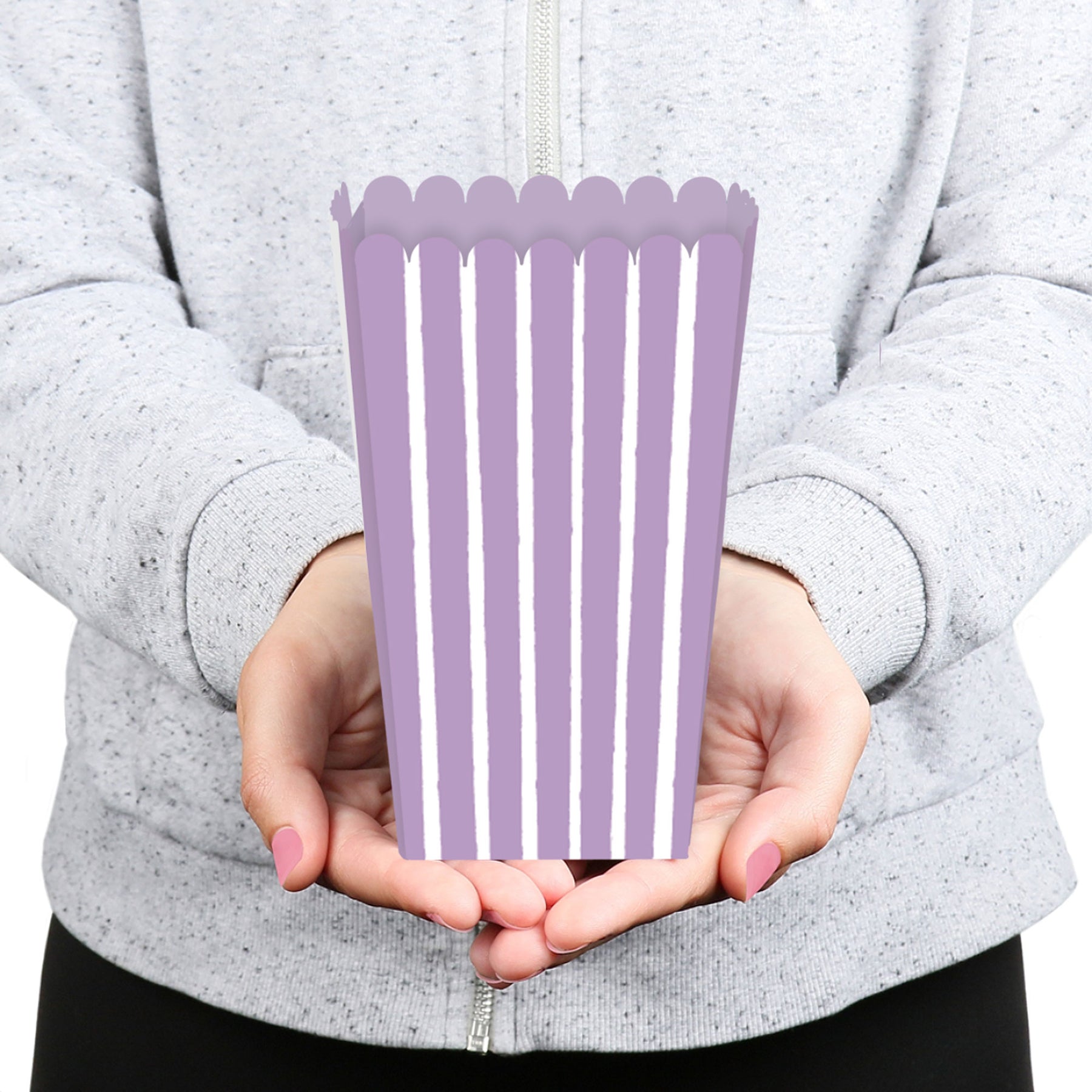 Your guests will not go hungry when you serve them sweet or salty snacks in these Purple Stripes popcorn boxes.