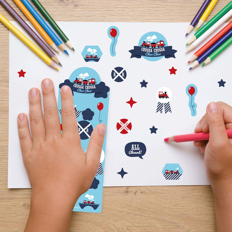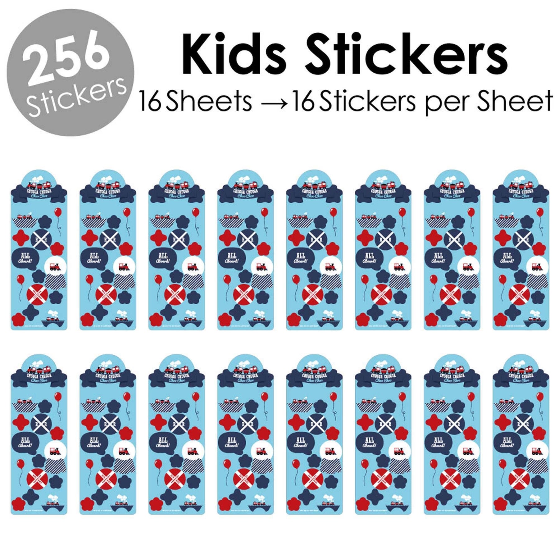 Railroad Party Crossing Kids Stickers include 16 matching sticker sheets with 16 easy-to-peel stickers that can be used many ways. Add sticker sheets to goodie bags as party favor at a Railroad Party Crossing - Steam Train birthday party or baby shower, use to decorate water bottles, classroom arts and crafts, sealing envelopes, and many other cool sticker ideas. Kids will have fun being creative with the many uses of fun Railroad Party Crossing Stickers.
