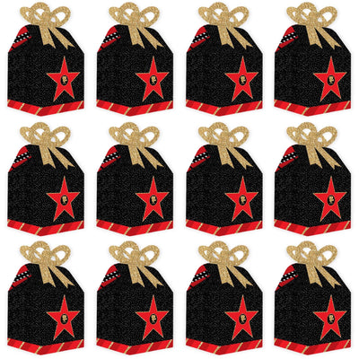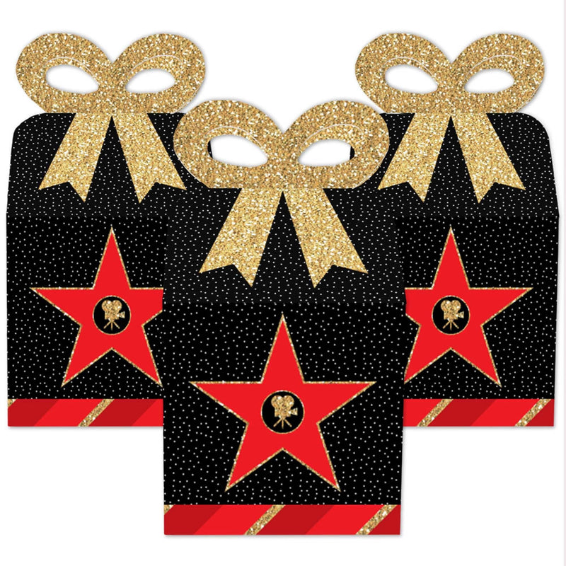 Bow boxes will complete your Movie Night Party. Bow boxes are ideal for holding small thank you gifts or homemade treats that are under 3.5 inches tall (height for storing items in closed box). Red Carpet bow boxes will arrive flat and each box will have crease lines and numbered tabs for easy folding. When assembled and closed, each box creates a 3D paper bow-shaped top with a square bottom. Packaging will include assembly instructions. Display as goodie boxes at your dessert buffet table or hand out to guests after the celebration.