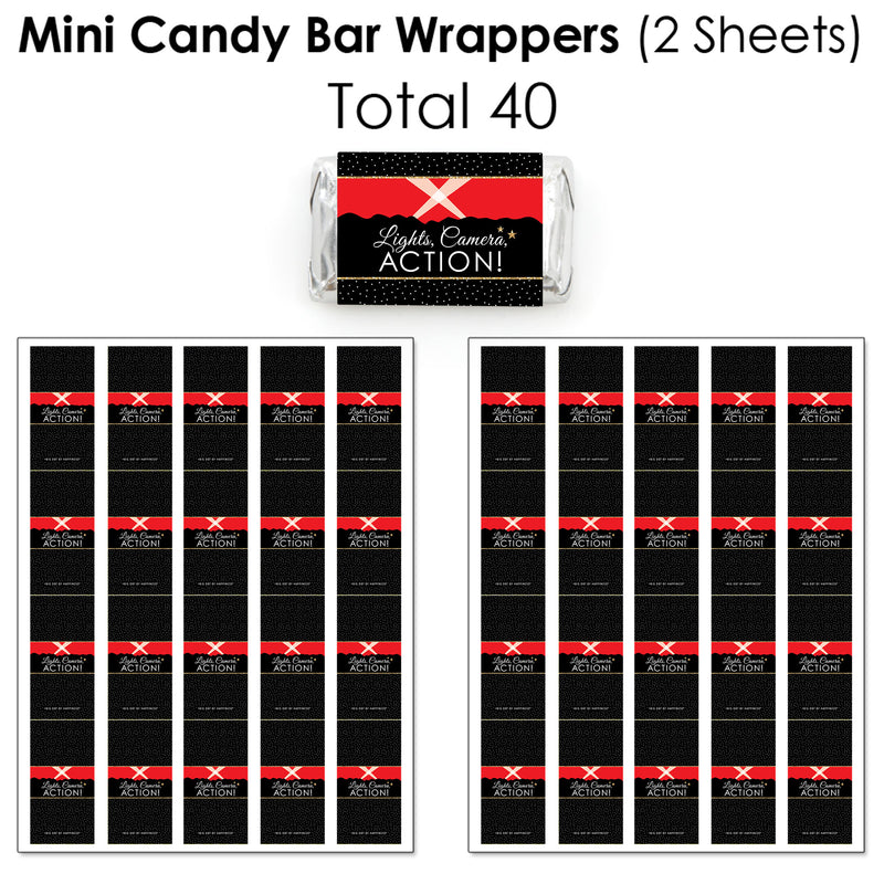 Wow your party guests when you coordinate the candy buffet and favors to your Movie Night Party theme with Red Carpet Favor Kit: Candy Stickers. This 304-piece kit includes Mini Candy Bar Wrappers, Round Candy Stickers, and Circle Stickers. Easy assembly with peel and stick stickers, no tape needed. Simply center and press onto your favorite candies. Red Carpet candy favor sticker kit is a fun way to add a unique touch to all areas of your party. Be creative with this DIY decoration and use for treats, centerpieces, place settings, favors, and more!