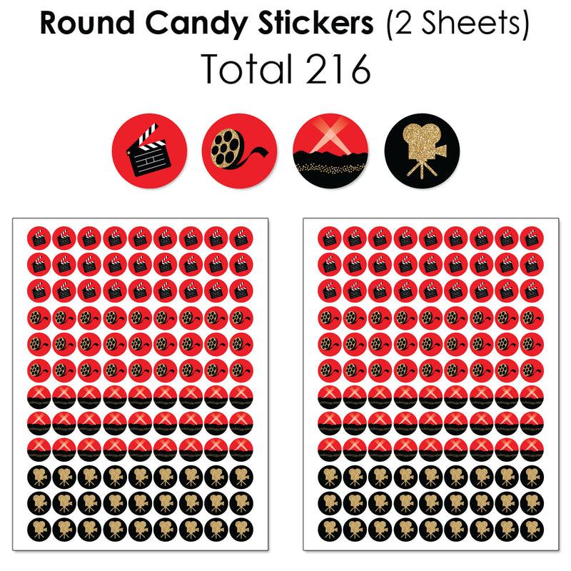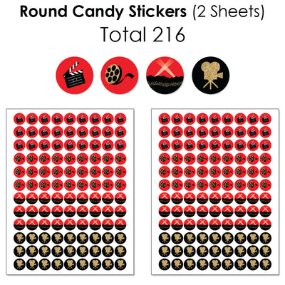 Red Carpet - Movie Night Party Candy Favor Sticker Kit - 304 Pieces